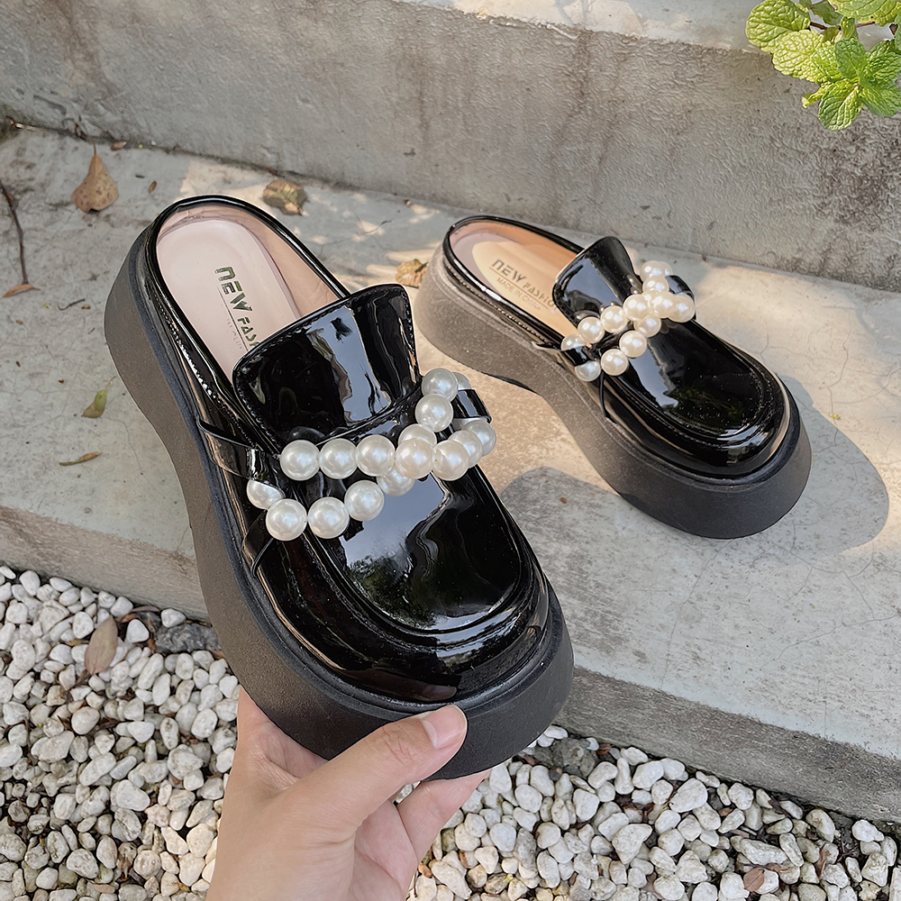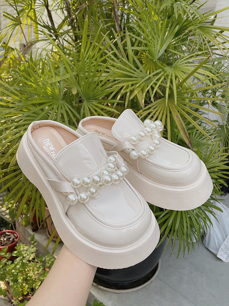 Baotou Half Slippers Female Pearl Fairy Slippers