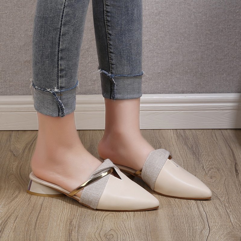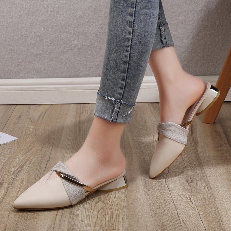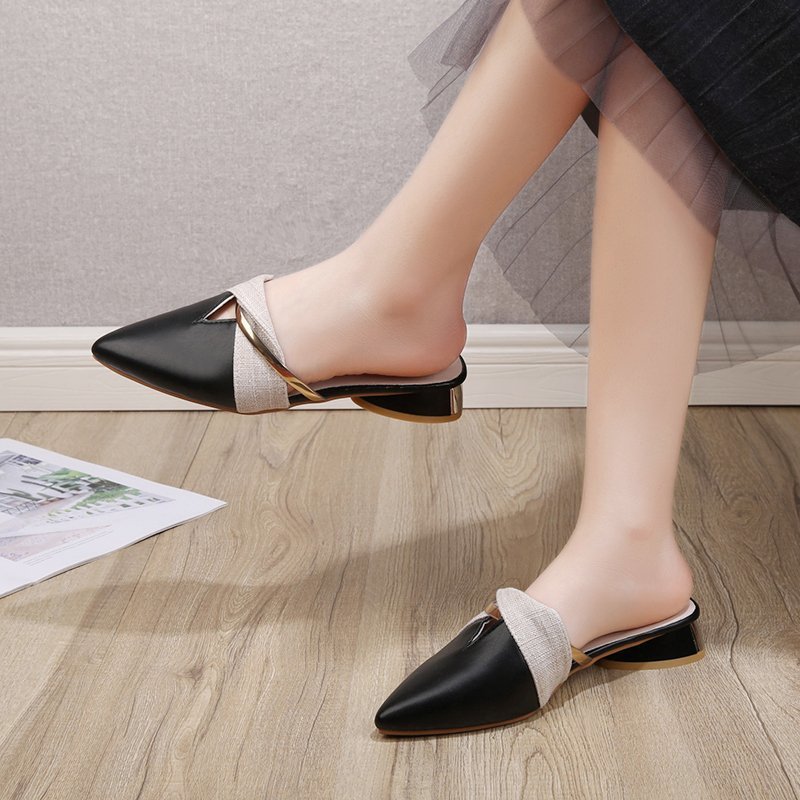 Baotou Half Slippers Pointed Toe Thick Heel Shoes Fairy Style Casual Sandals