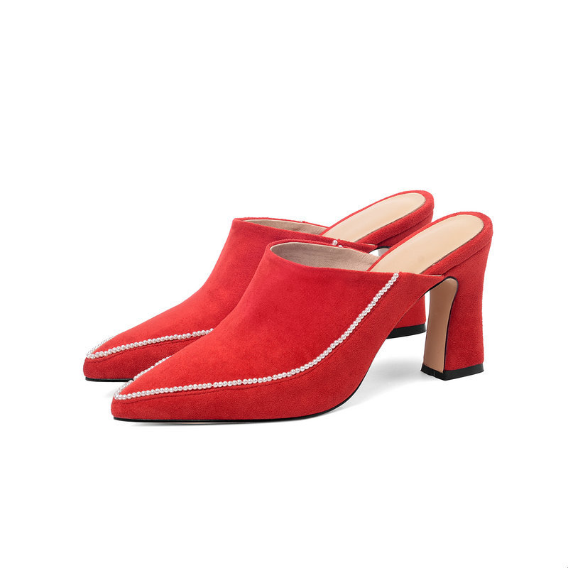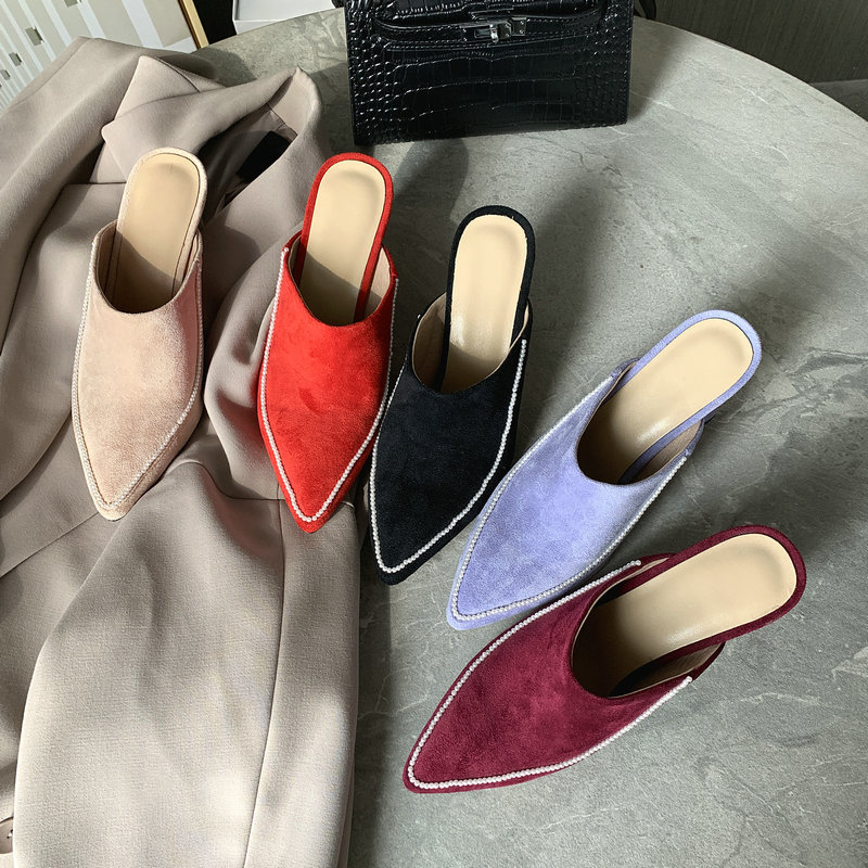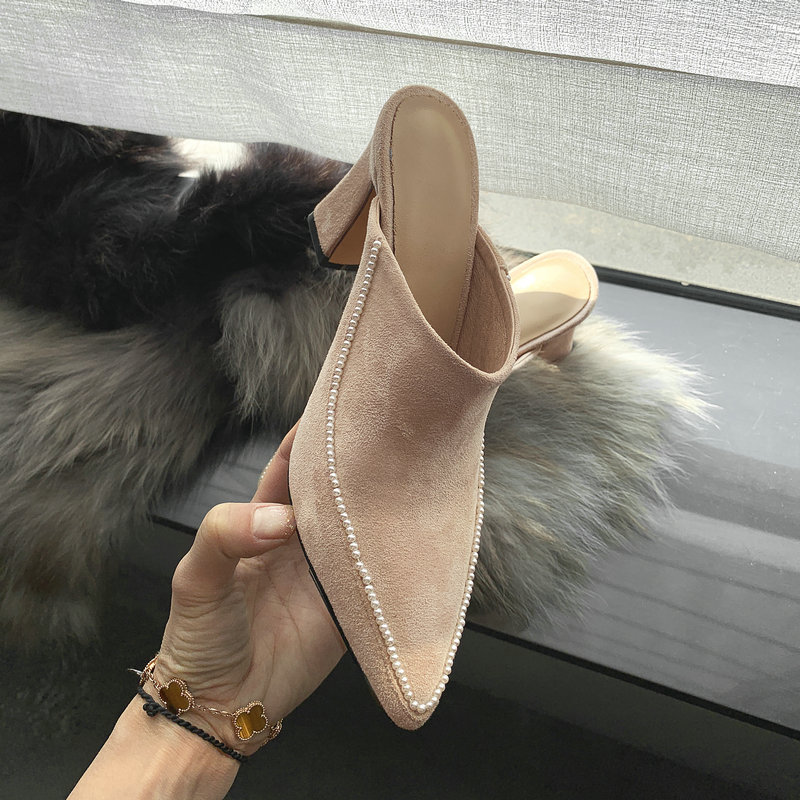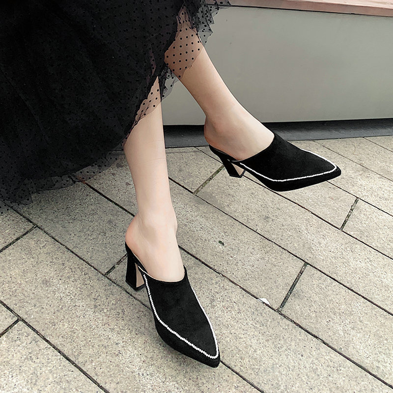 Baotou Half Slippers Women's Outer Wear Half Support Thick-heeled High-heeled Shoes All-match Pointed Toe