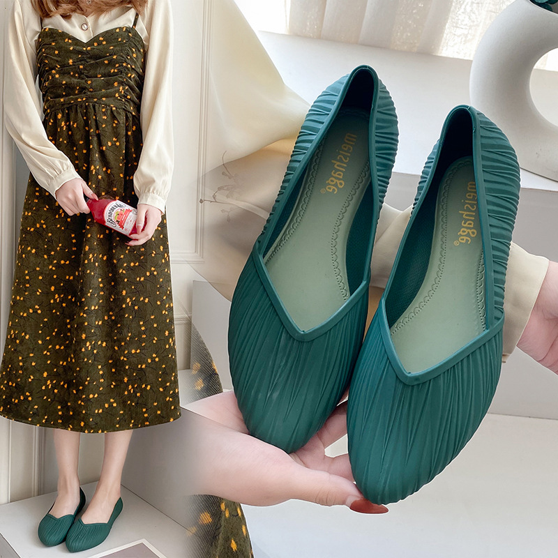 Baotou Sandals Women's Shallow Mouth Non-slip Crystal Shoes Low-top Flat Bottom Casual