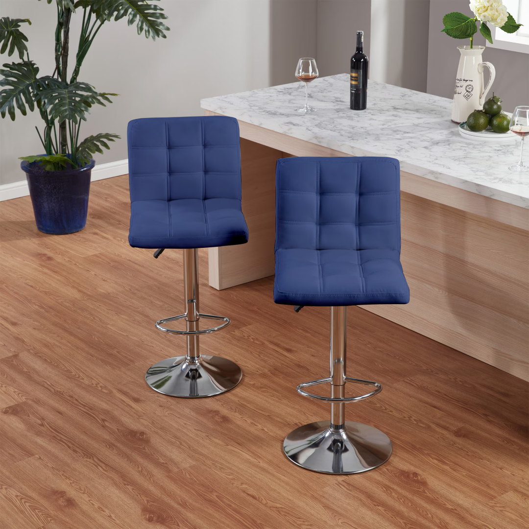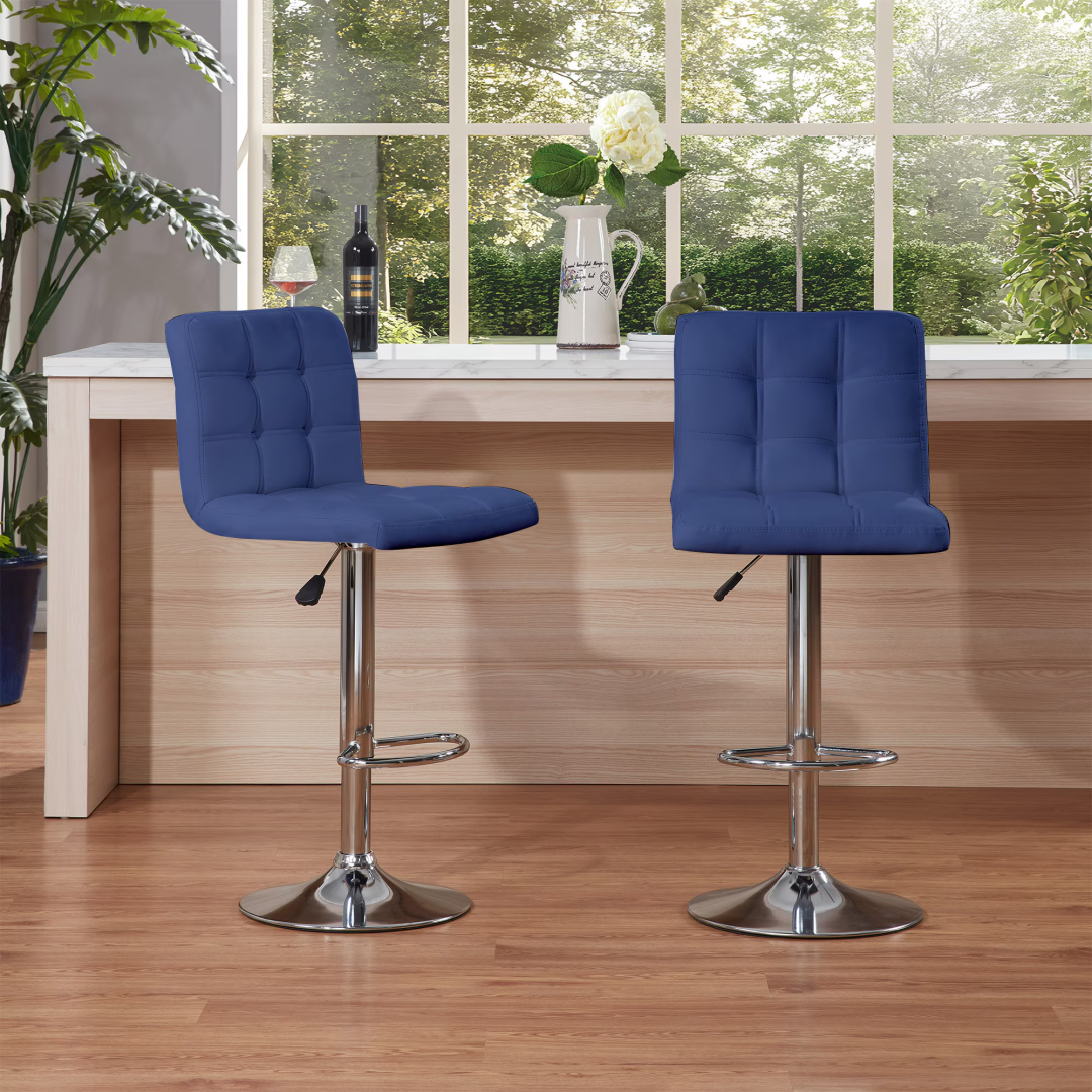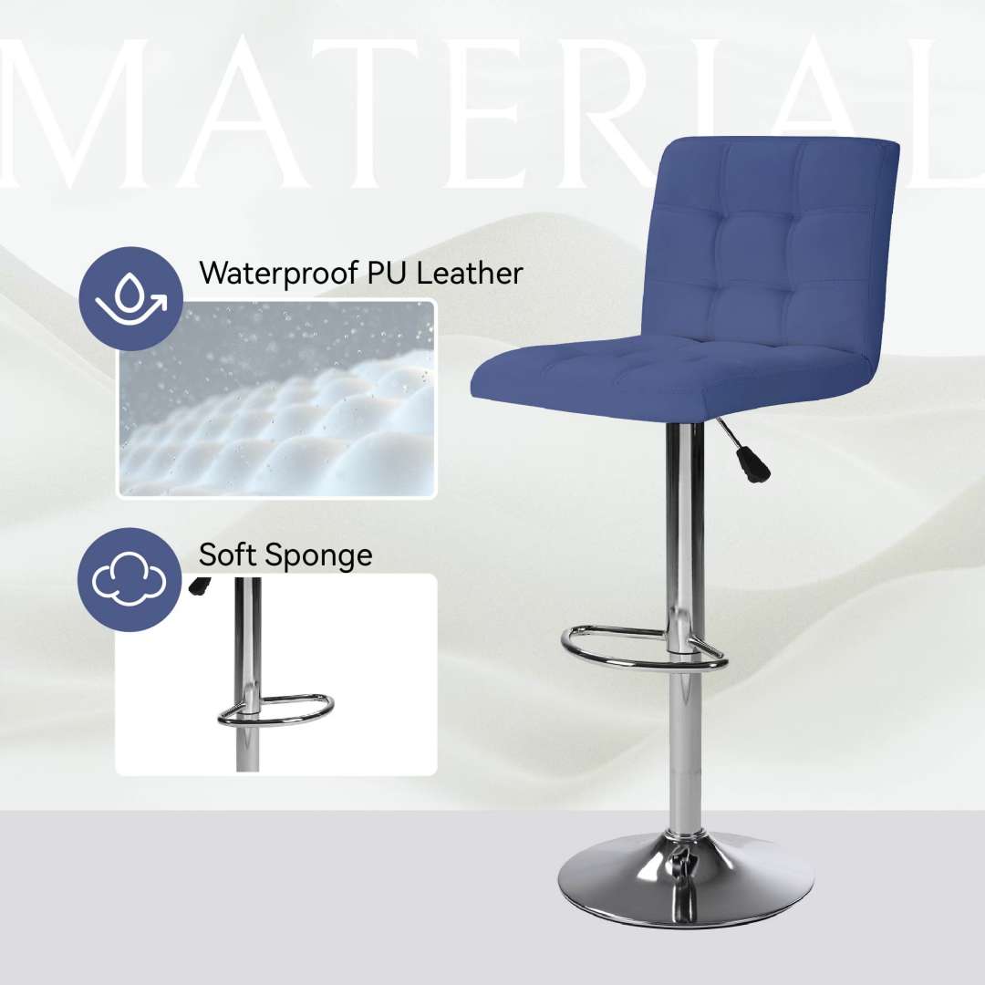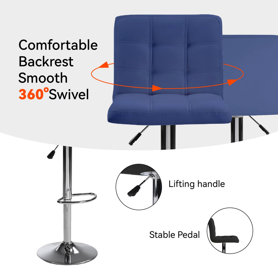 Product Name: Bar Stools 1 Set of 2, Counter Height Bar Stools, Square Cushion Bar Stools with Back, Footstool, Cafe, Blue, 2 pieces