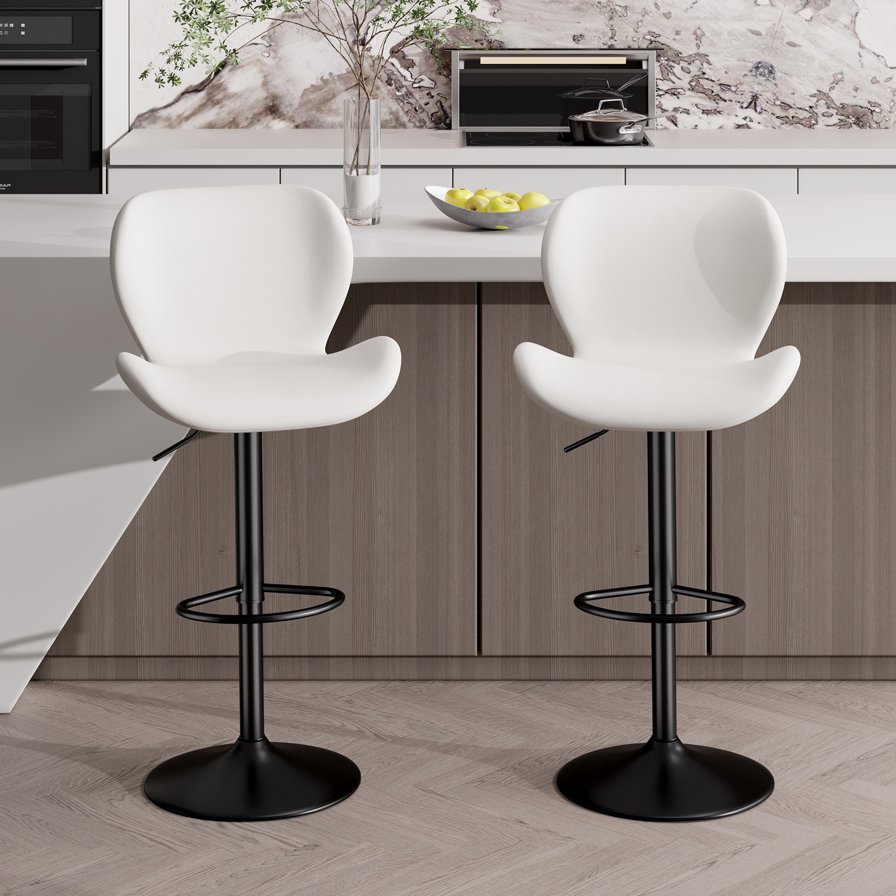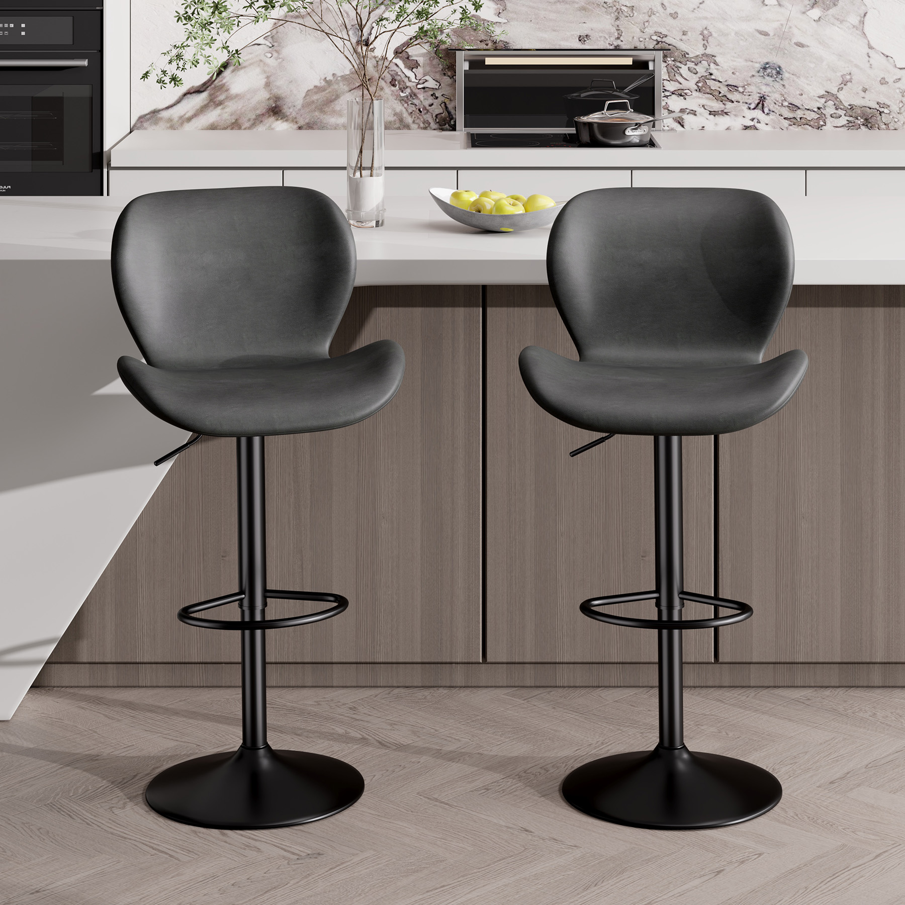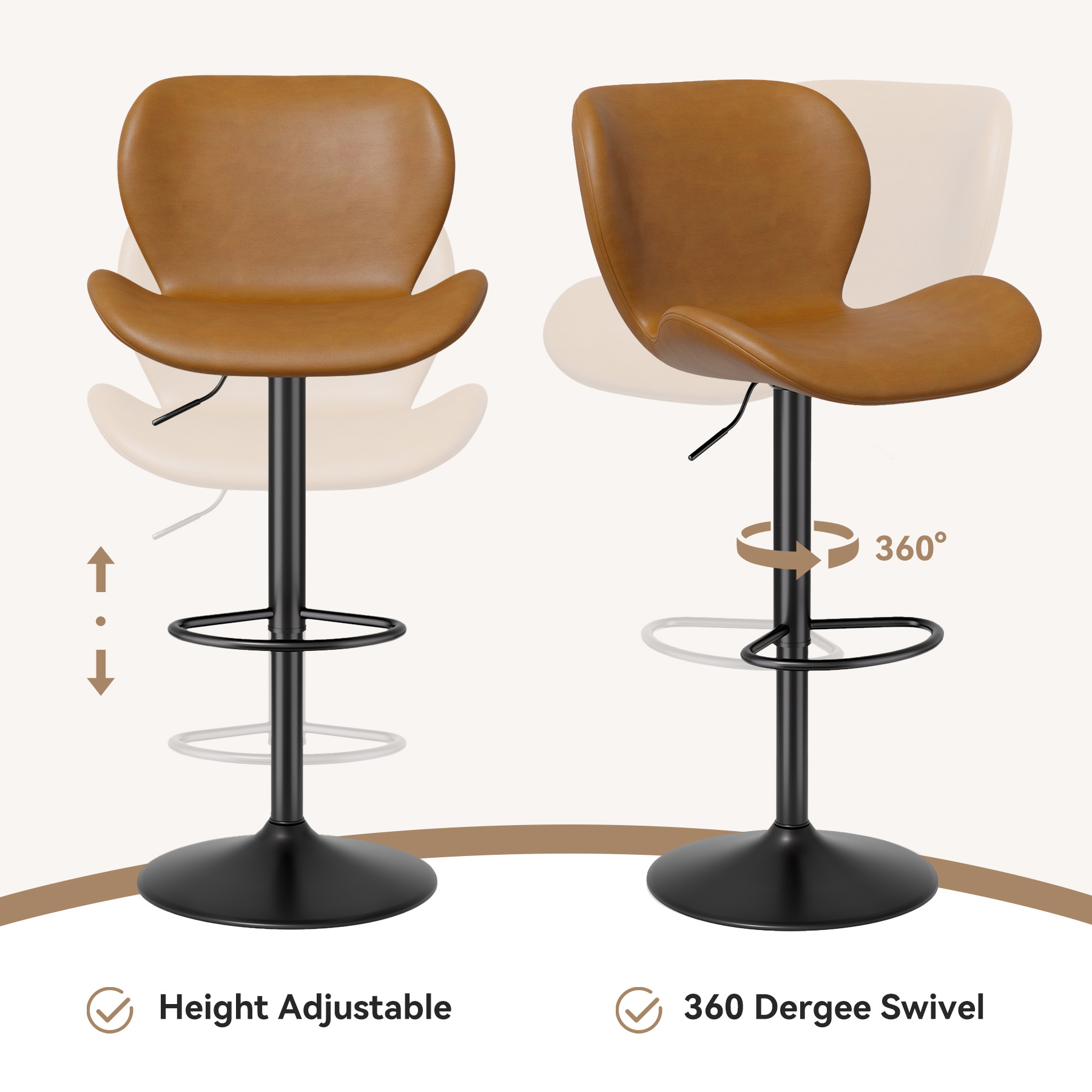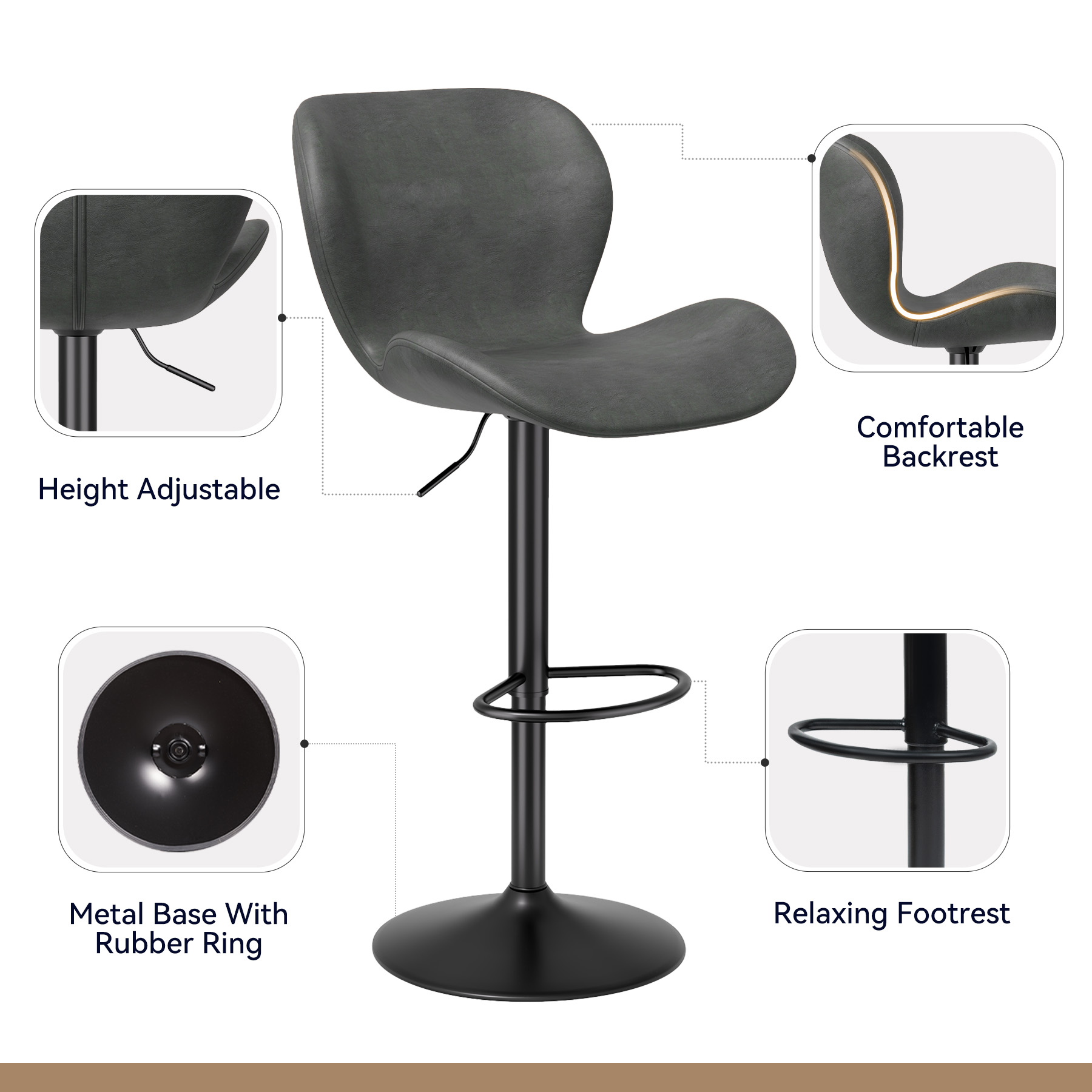 The bar stool base is made of made of sturdy metal, which is stable and durable and has a high load capacity of 300 lbs. In addition, the anti-scratch rubber ring on the bottom provides non-slip function to prevent the floor from scratching and making harsh noise.