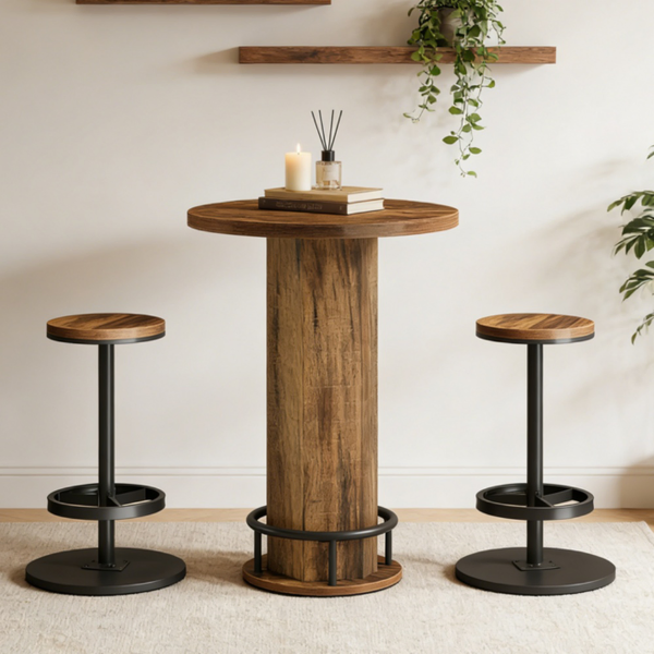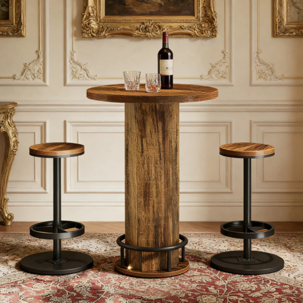 Compact Yet Spacious - Measuring 23.62" wide and 37.8" tall, this round bar table maximizes space without sacrificing style. Its smart design makes it ideal for small apartments, breakfast nooks, or tight dining areas.