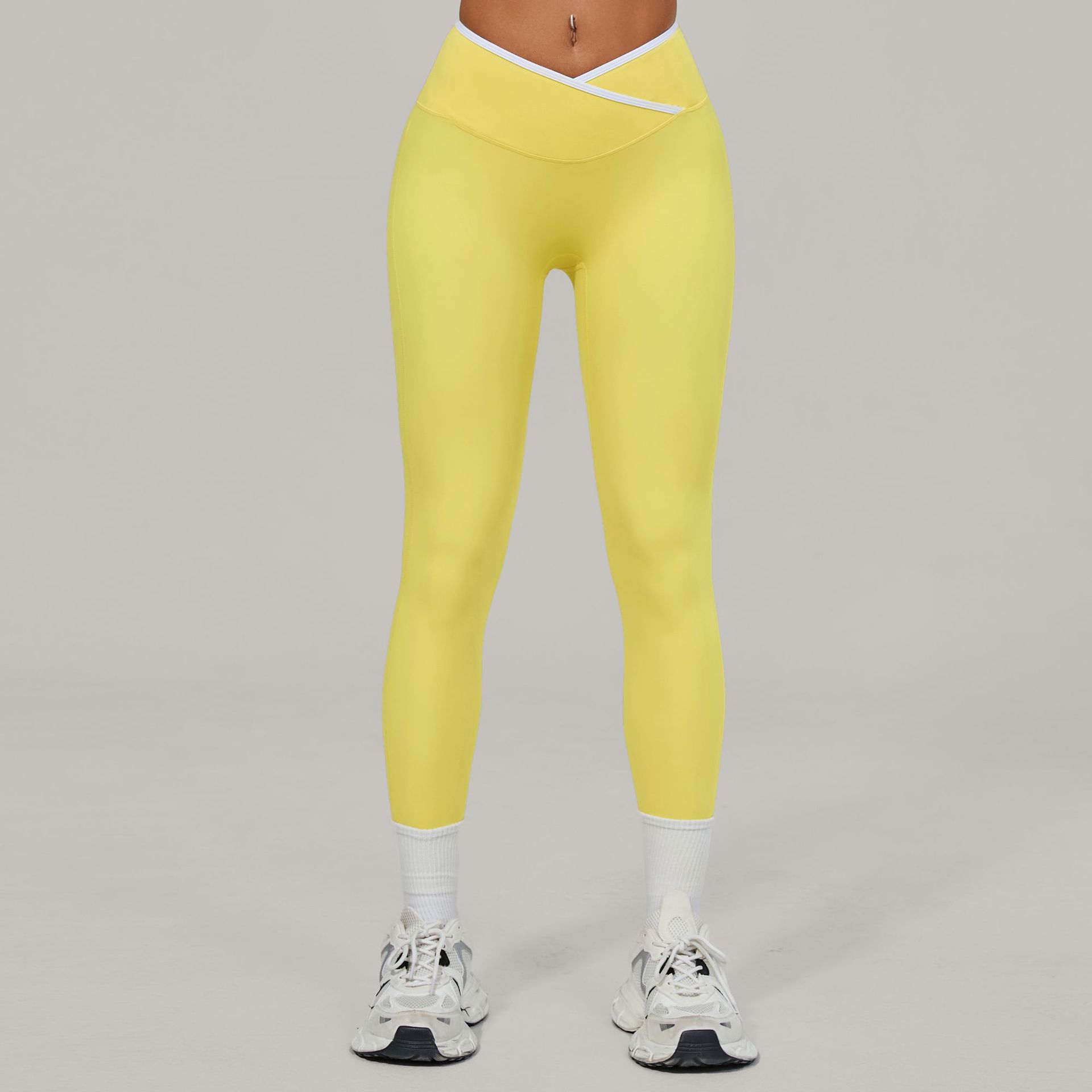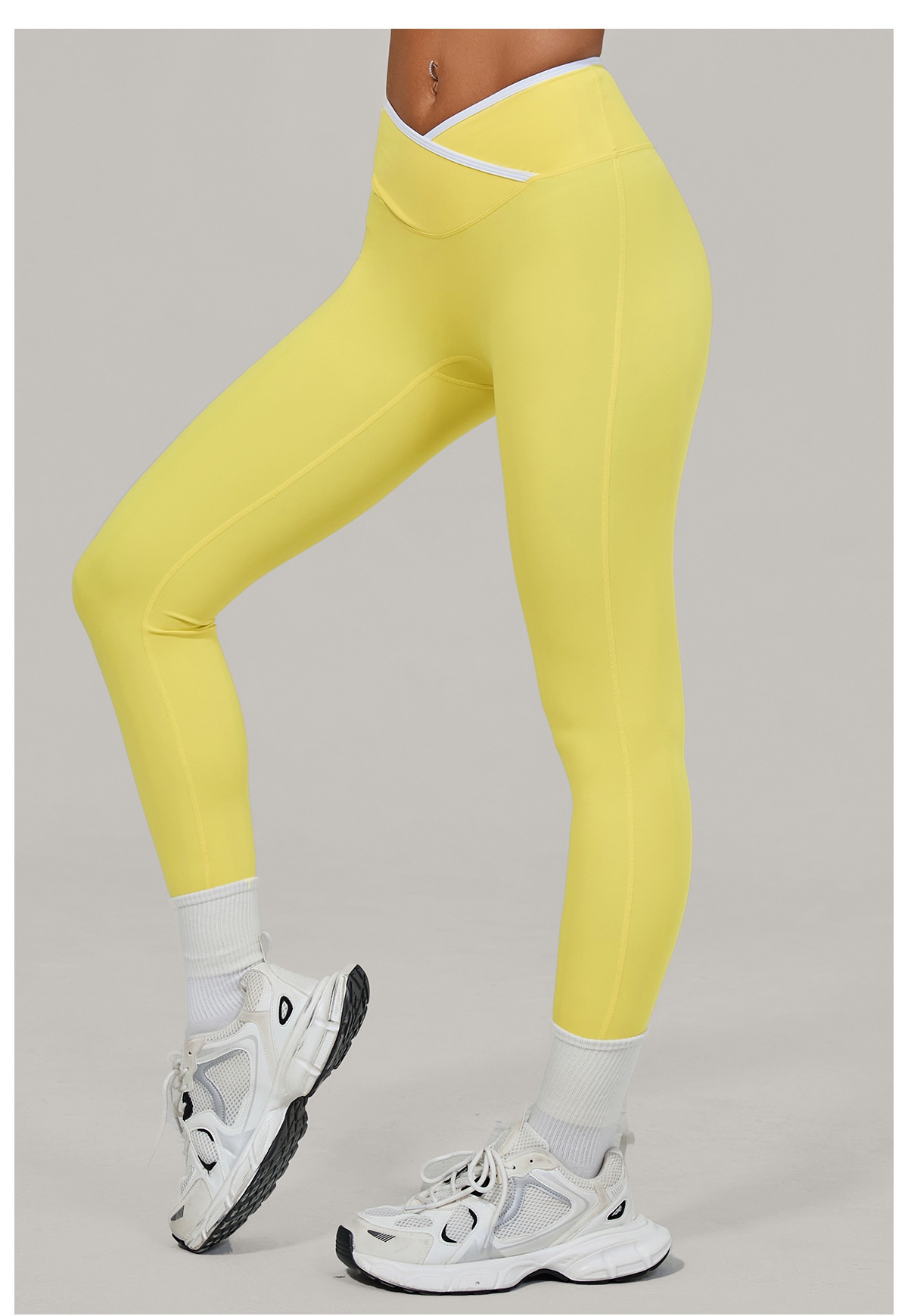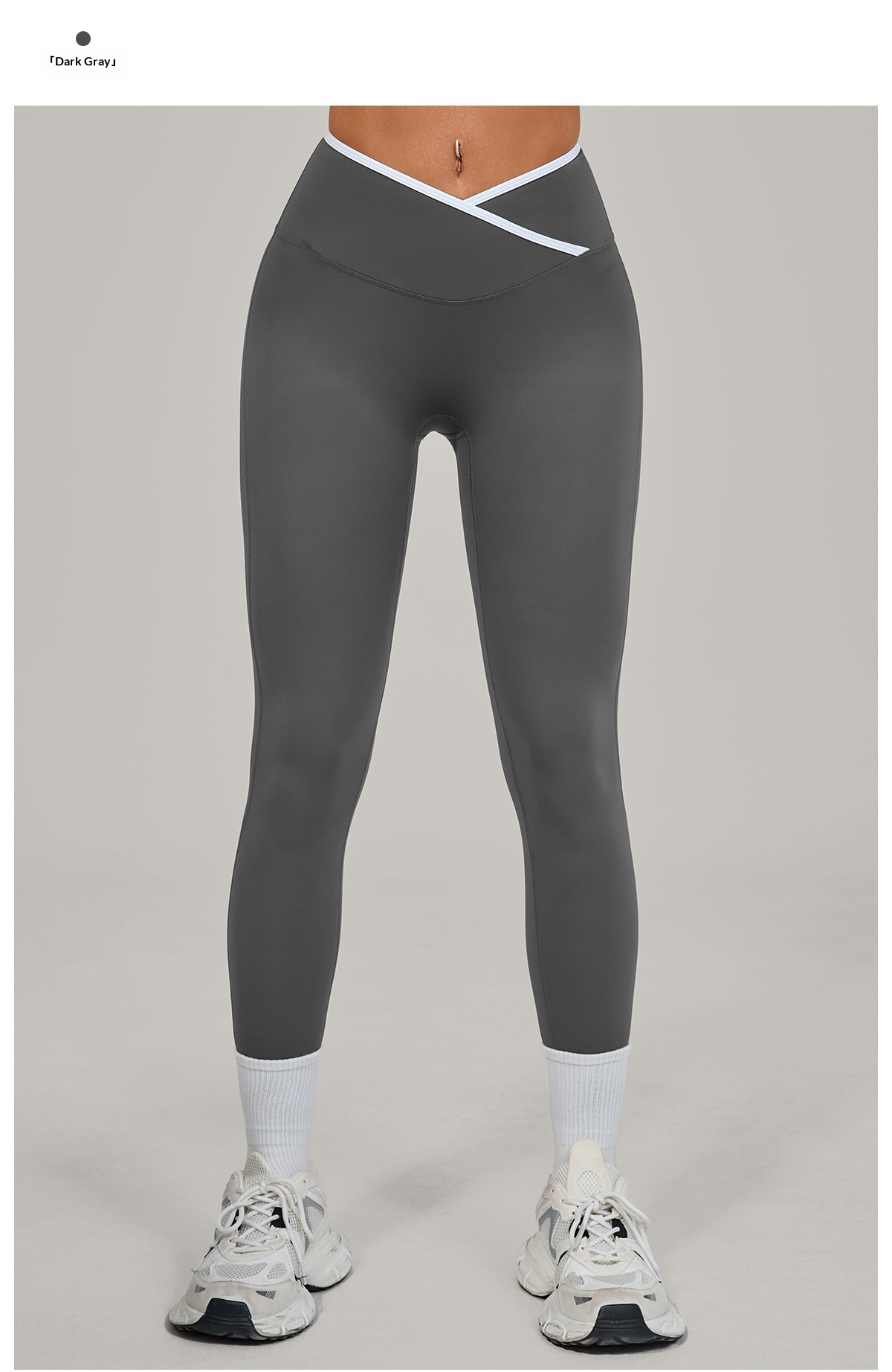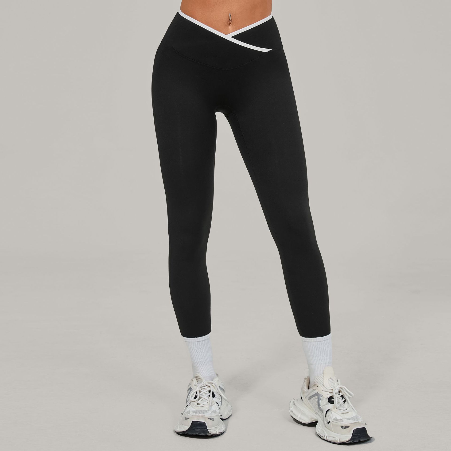 Bare-feel Tight Cross-over High-waist Contrast-color Leggings