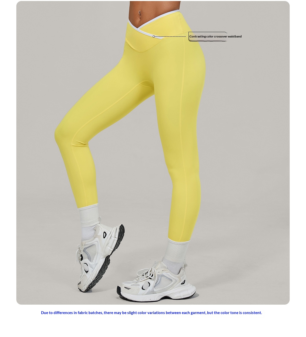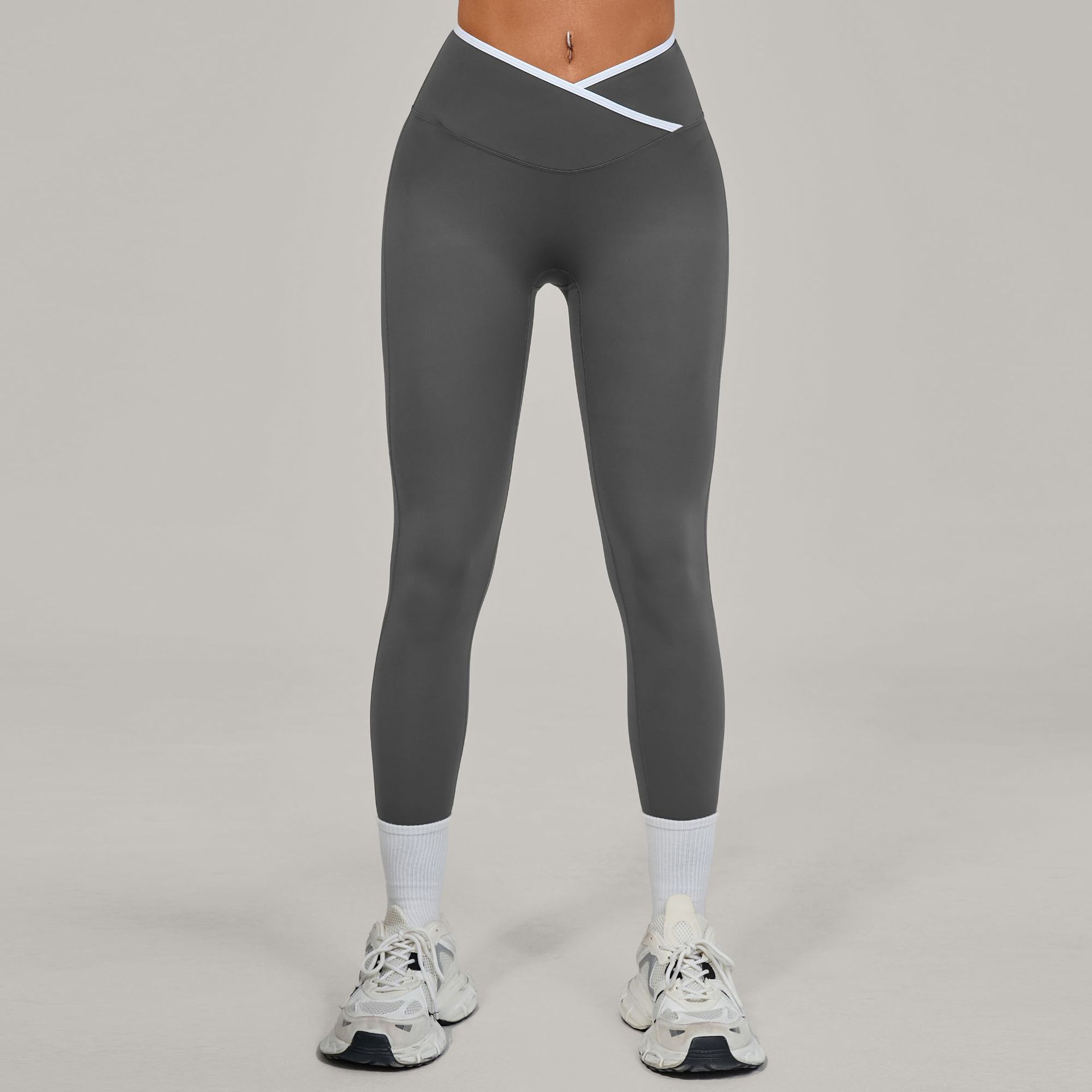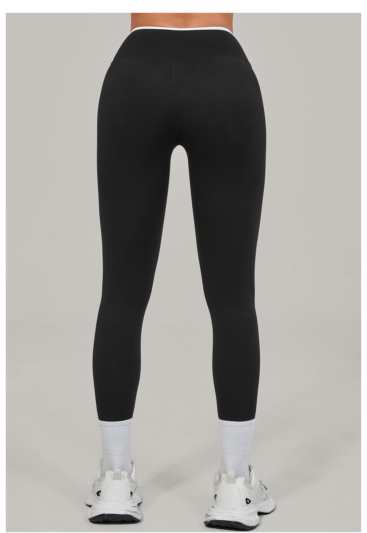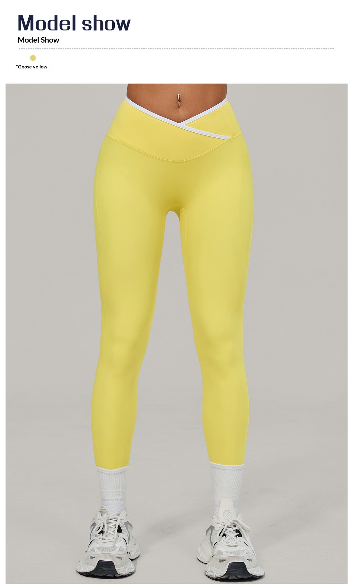 Bare-feel Tight Cross-over High-waist Contrast-color Leggings