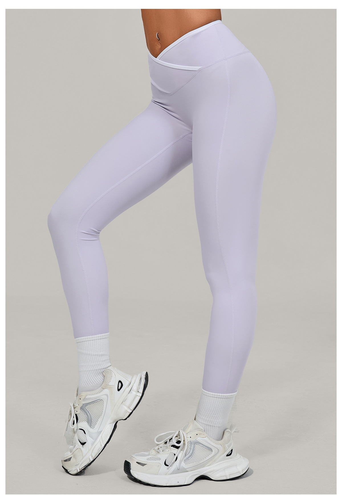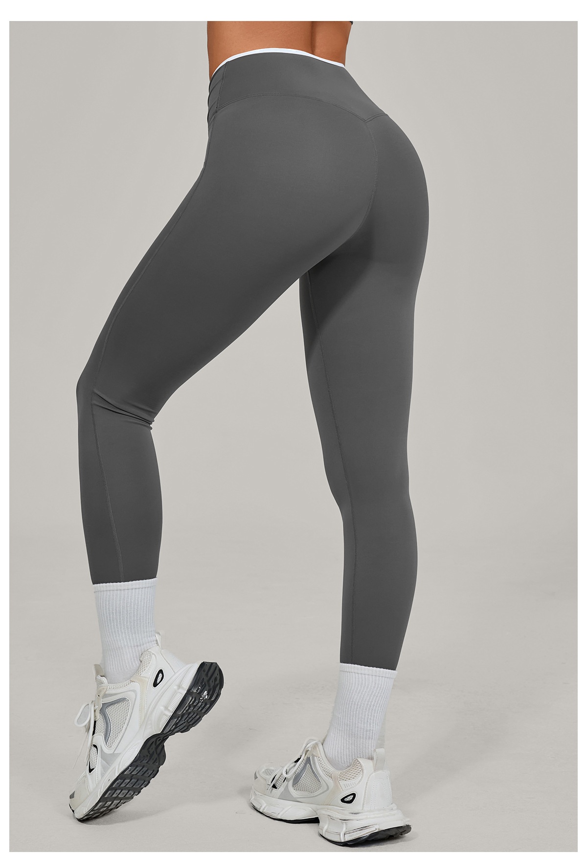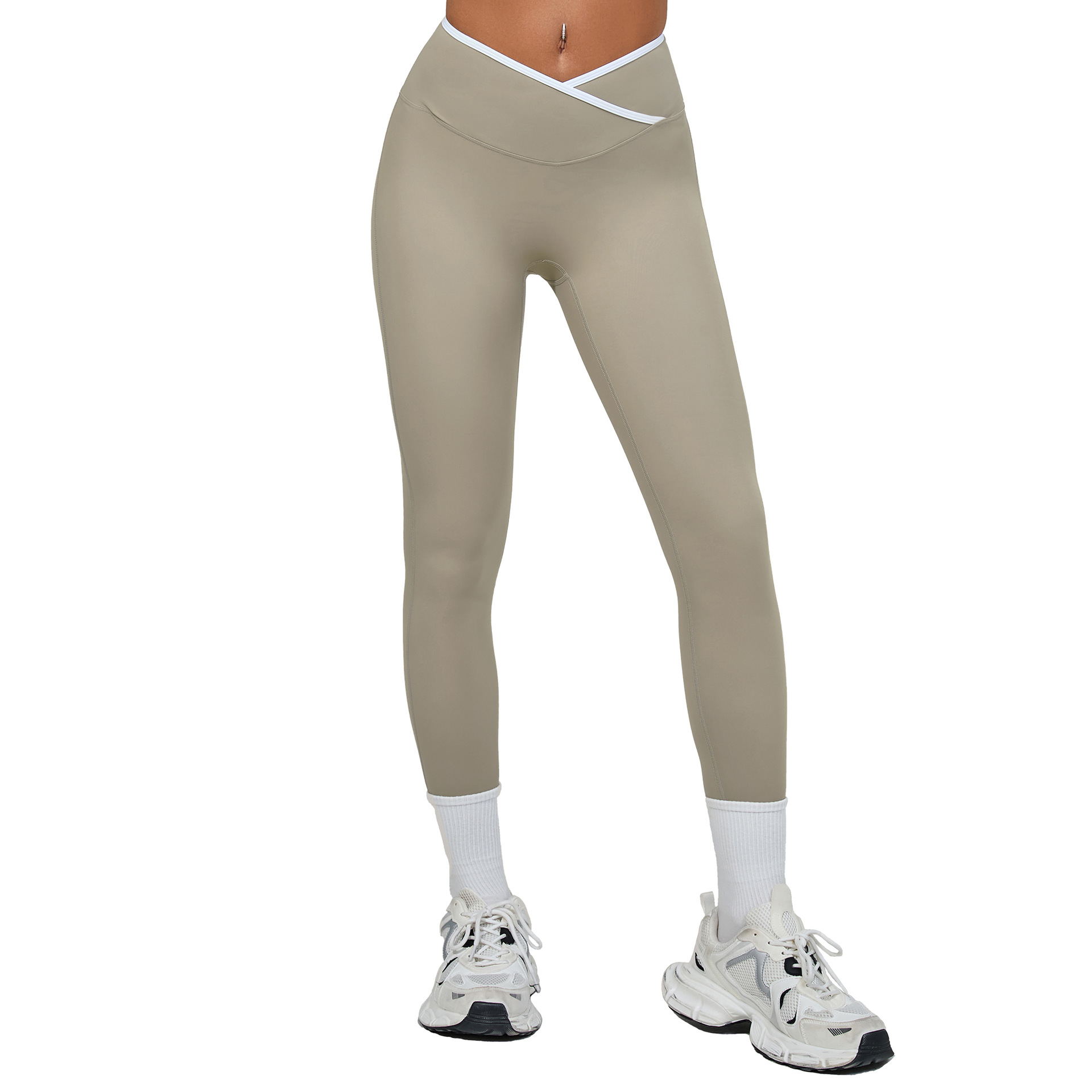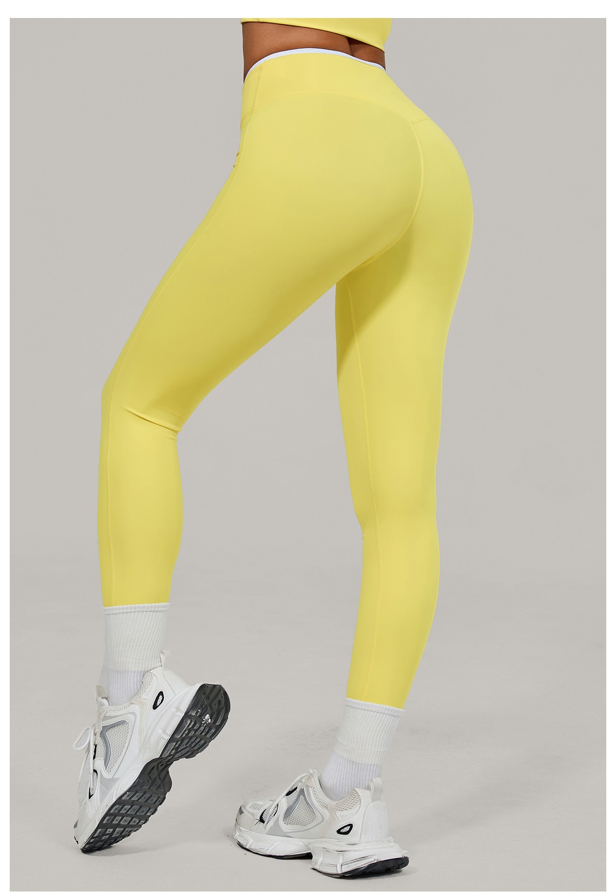 Bare-feel Tight Cross-over High-waist Contrast-color Leggings