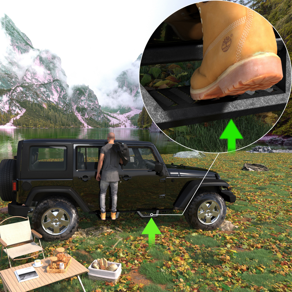 Compatibility & Distinct Design: Our step bars are a perfect For 07-18 Jeep Wrangler JK 4 Doors Model . They seamlessly integrate with your vehicle, enhancing its appearance and functionality.