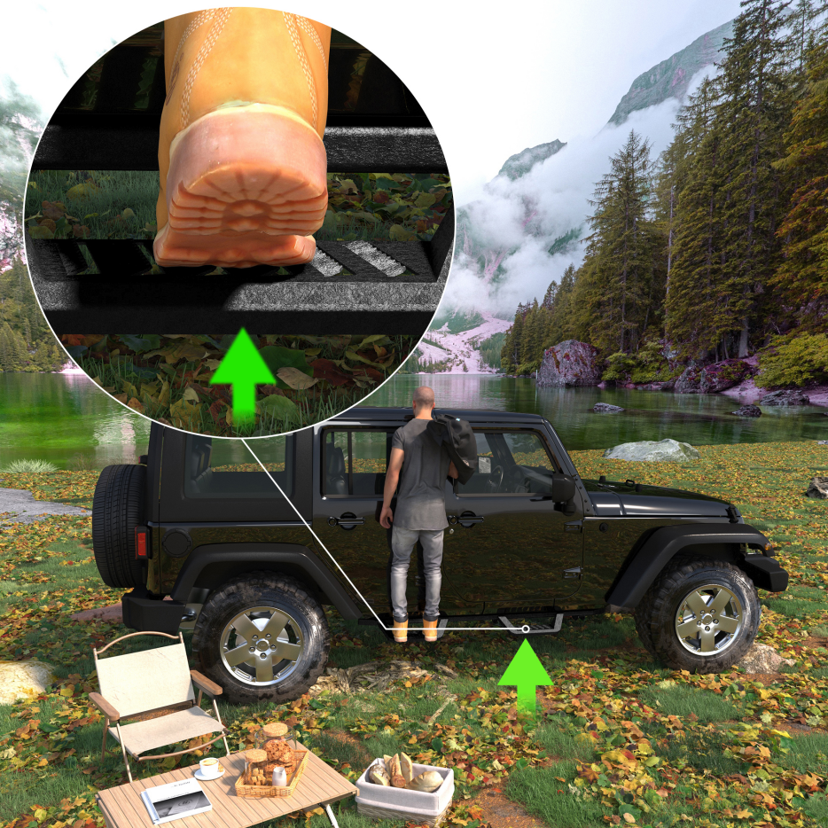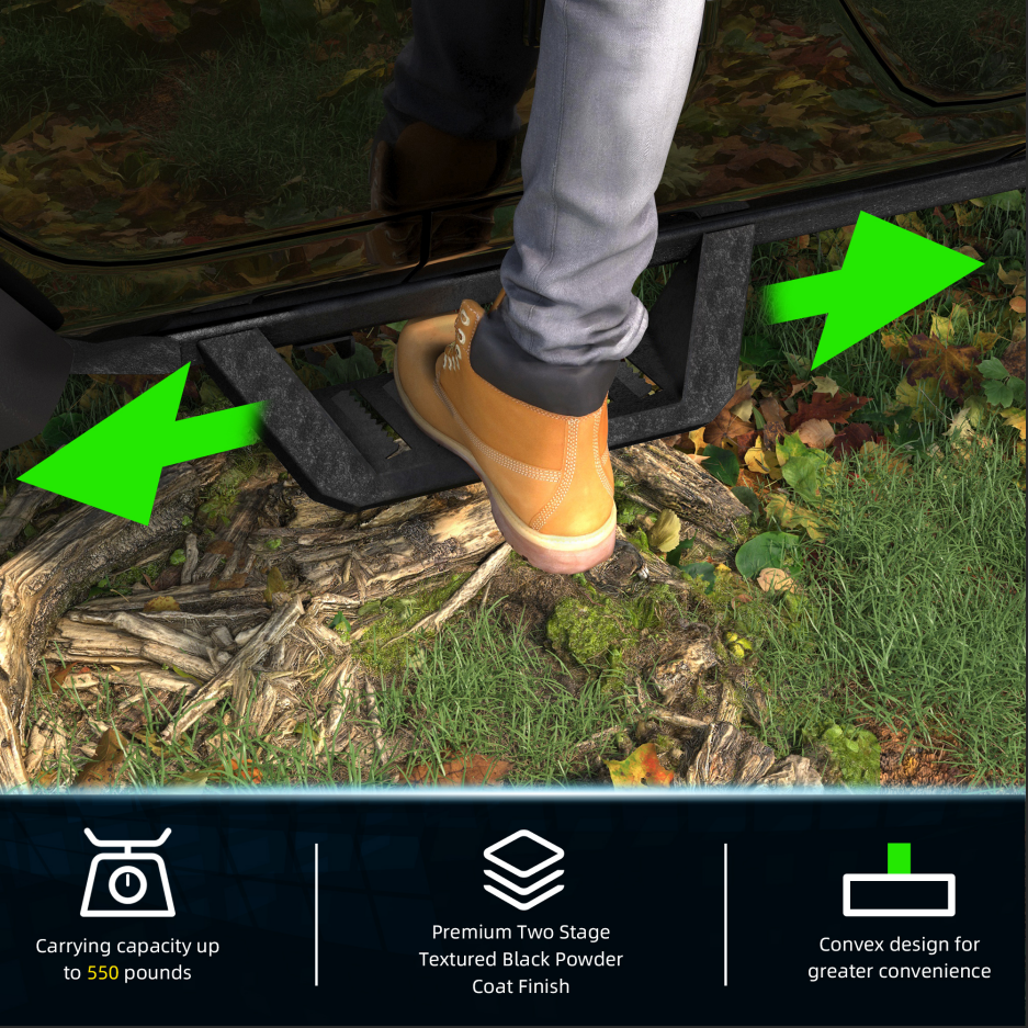 Strong & Durable: Our running boards are built to last, with a unique powder coating that withstandss rust and corrosion. The laser-cut step plate offers a non-slip surface and reinforced grip, supporting up to 700 lbs. without bending.