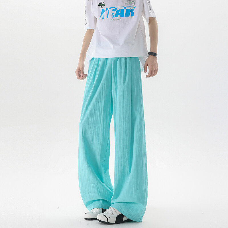 Basamine Ice Silk Drooping Curtain Lazy Men's Summer Mopping Wide-leg Casual Pants