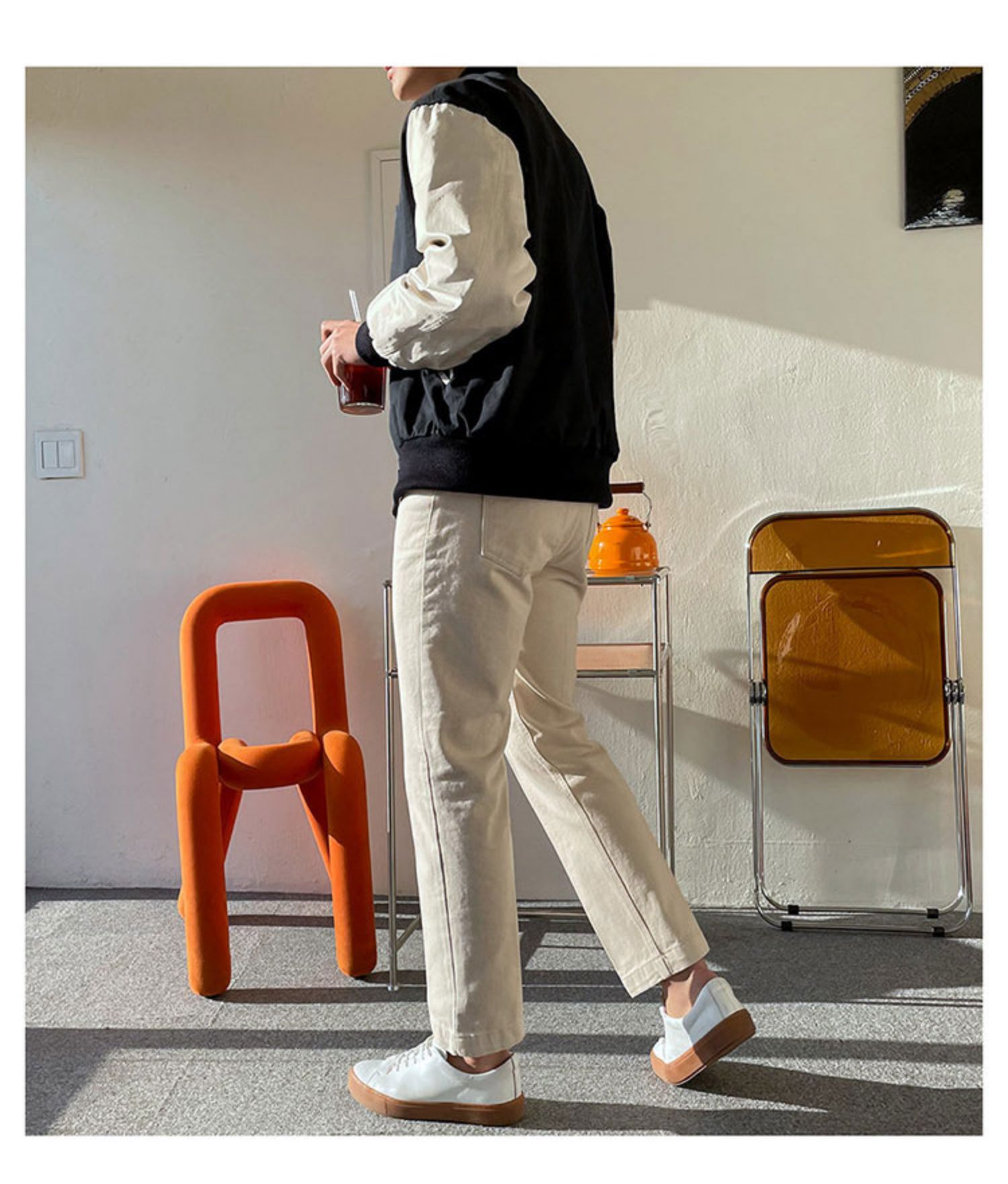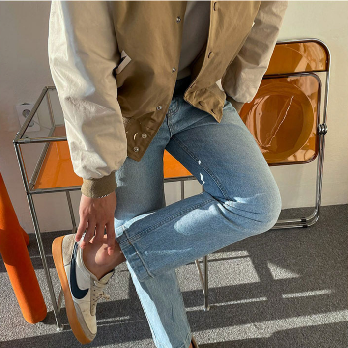 Features: Loose fitting, single breasted