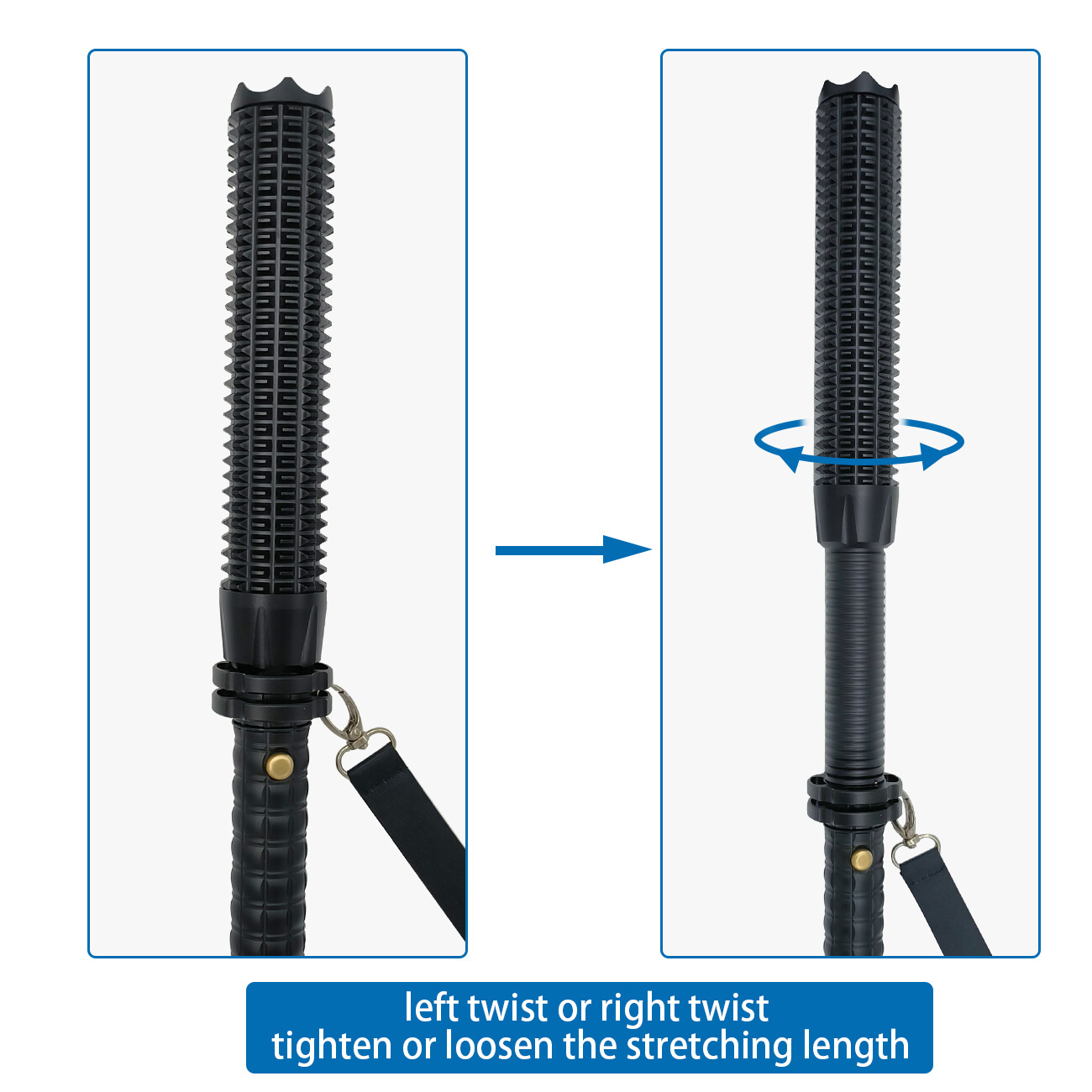 46CM LED Flashlight Hiking Retractable Zoom Security Torch for Camping Lamp Bright
