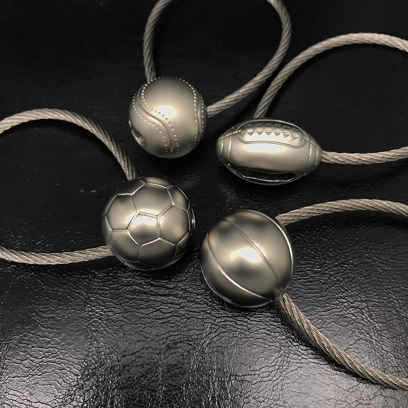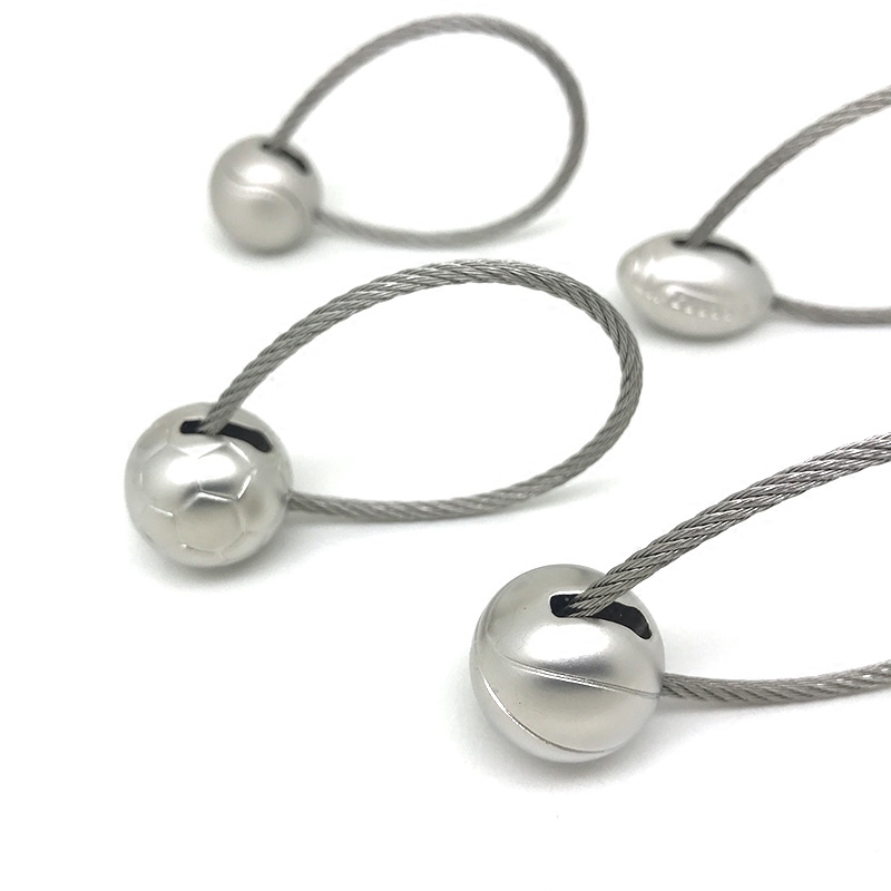 Size: Baseball diameter is 1.9cm, football diameter is 2cm, basketball diameter is 2cm, football length is 2.5cm and width is 1.6cm. The keyhole needs to be larger than 0.35cm before it can be inserted into the wire rope.