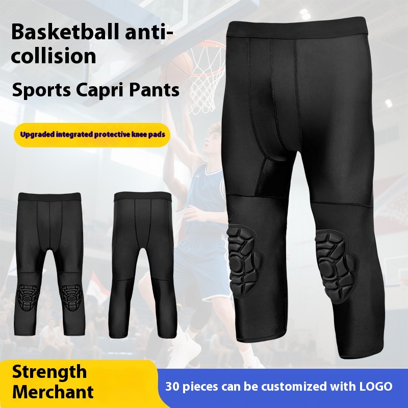 Basketball Tight Cropped Pants Knee Pad Integrated Anti-collision Leggings
