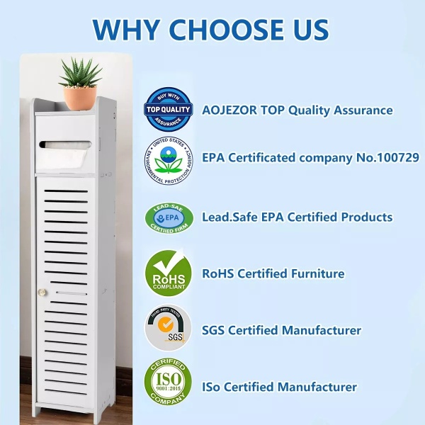 【SPACE SAVING】The floor standing bathroom storage cabinet with top placement layer, tissue layer and storage layer. The top layer can be used for plant pots, decorations and aromatherapy and other place settings, the tissue layer can hold toilet paper rolls for easy use, and the storage layer cabinet can be used to store toilet paper or cleaning supplies, etc.