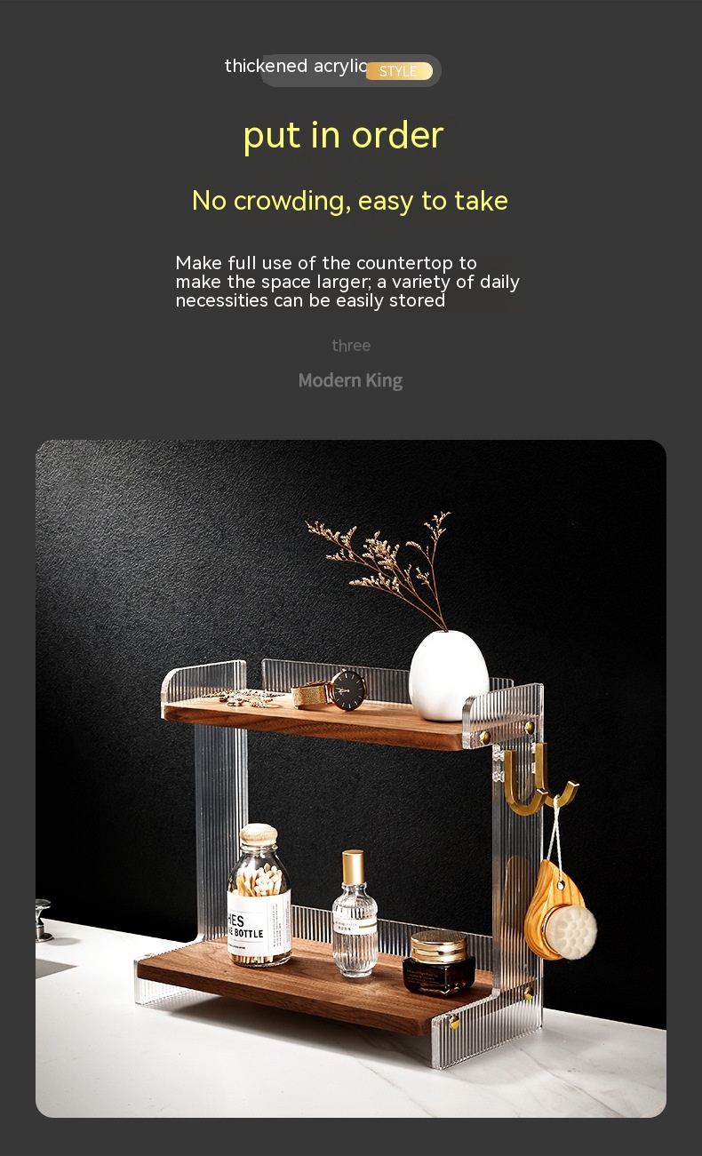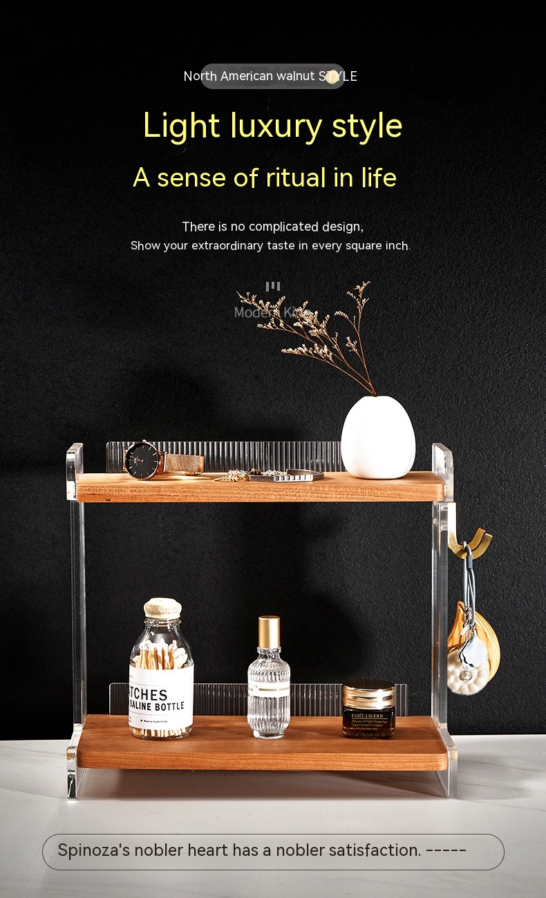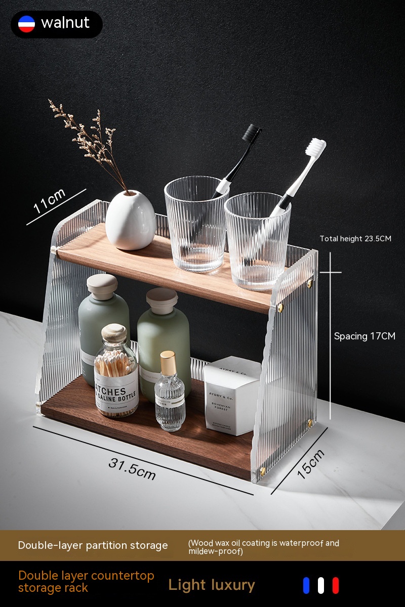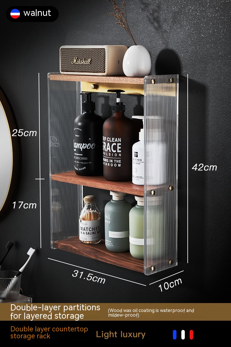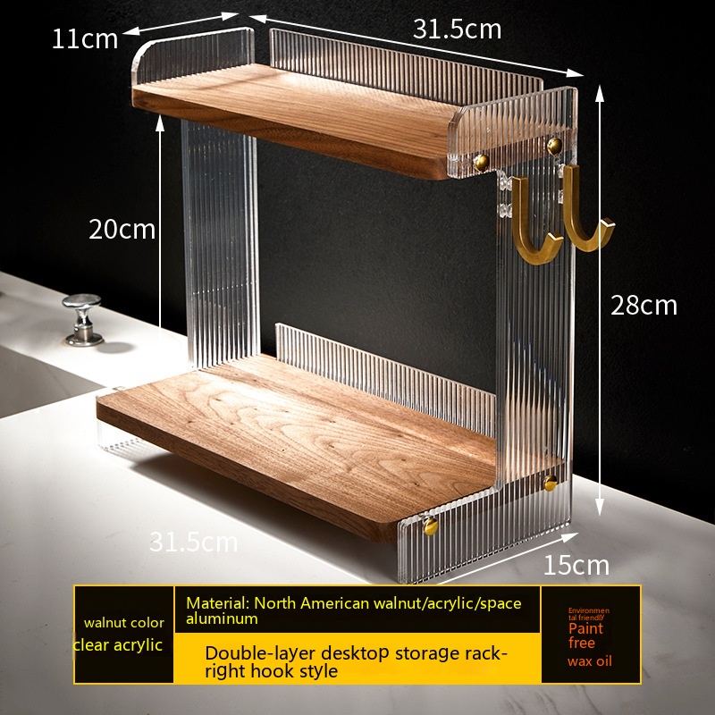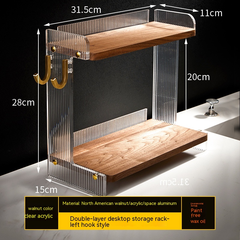 Color: walnut shelf, walnut right hook, walnut left hook, desktop double shelf, wall-mounted double shelf