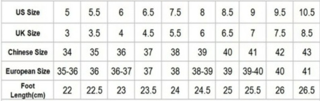 Size; 36-37 [suitable for sizes 35-36], 38-39[suitable for sizes 37-38], 40-41[suitable for sizes 39-40], 42-43[suitable for sizes 41-42], 44-45[ Suitable for 43-44 size]