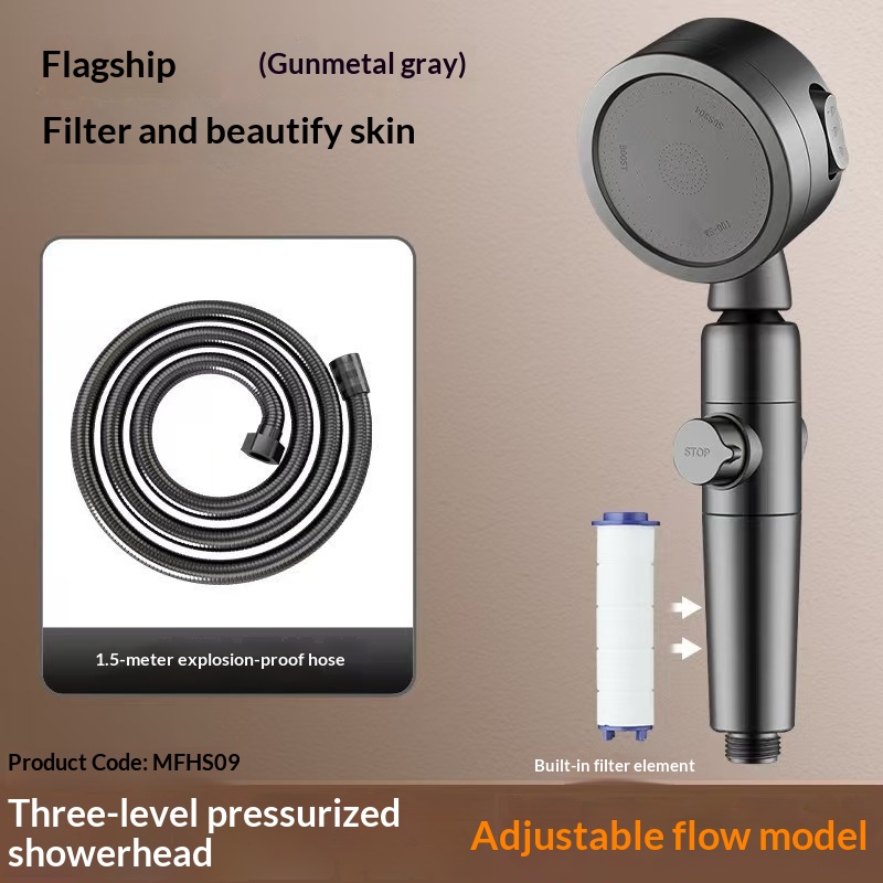 Specifications: Electroplated silver three-stage shower (no filter), electroplated three-stage silver (with filter), special filter rod
