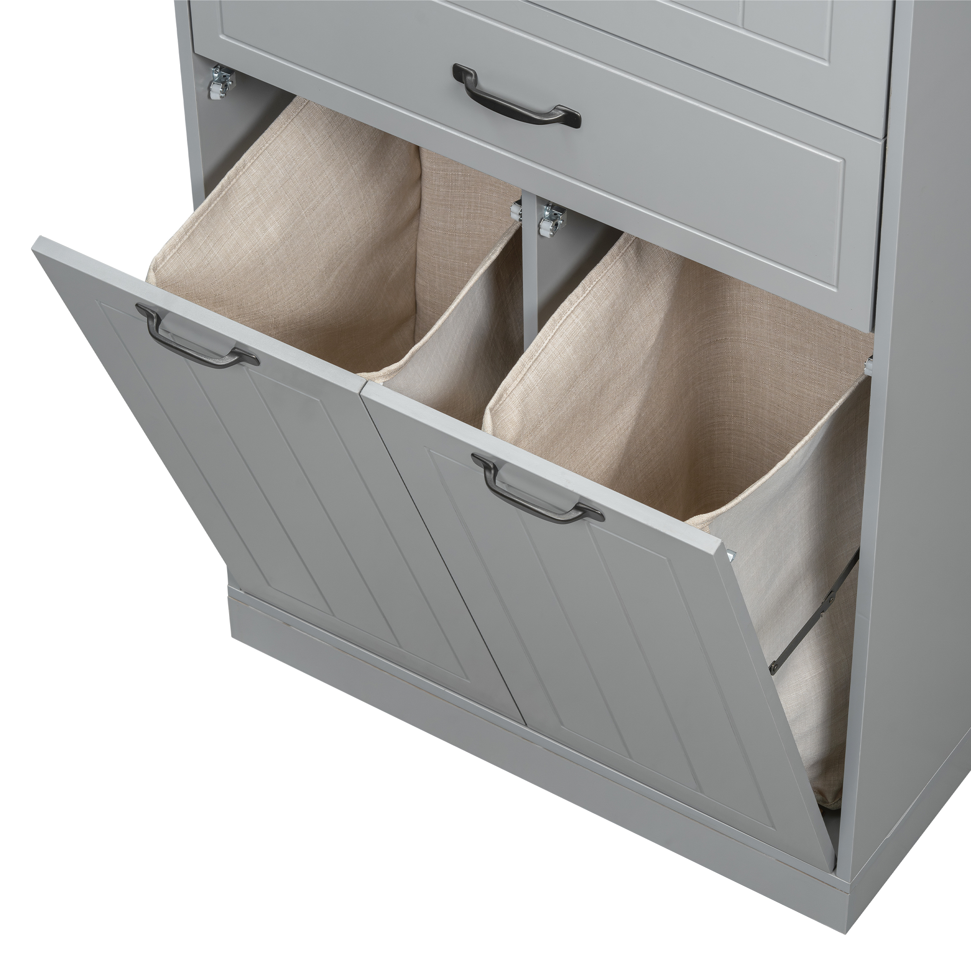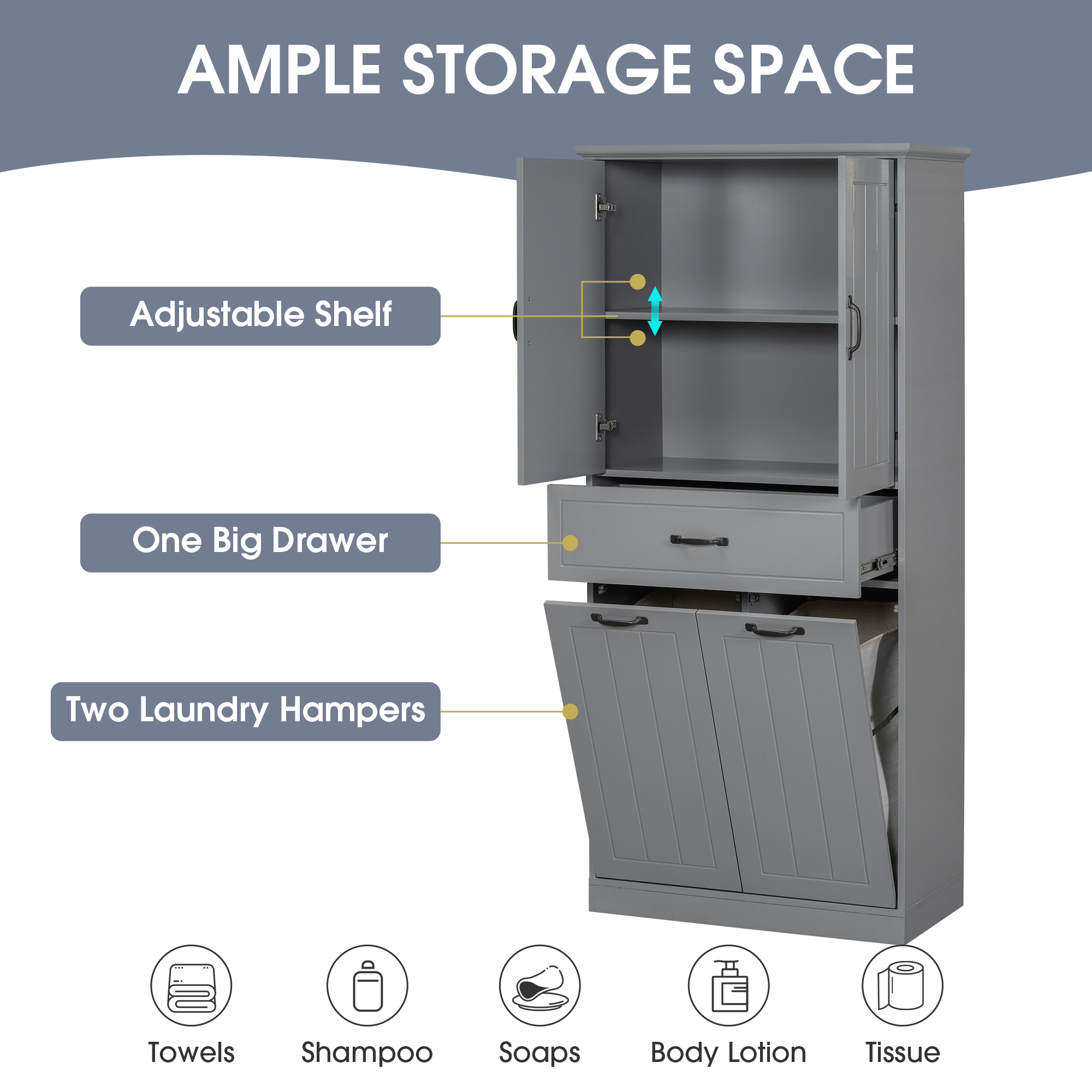 Product Name:Bathroom Storage Cabinet with Two Laundry Baskets, Storage Cabinet with Doors and Drawer for Home, Grey