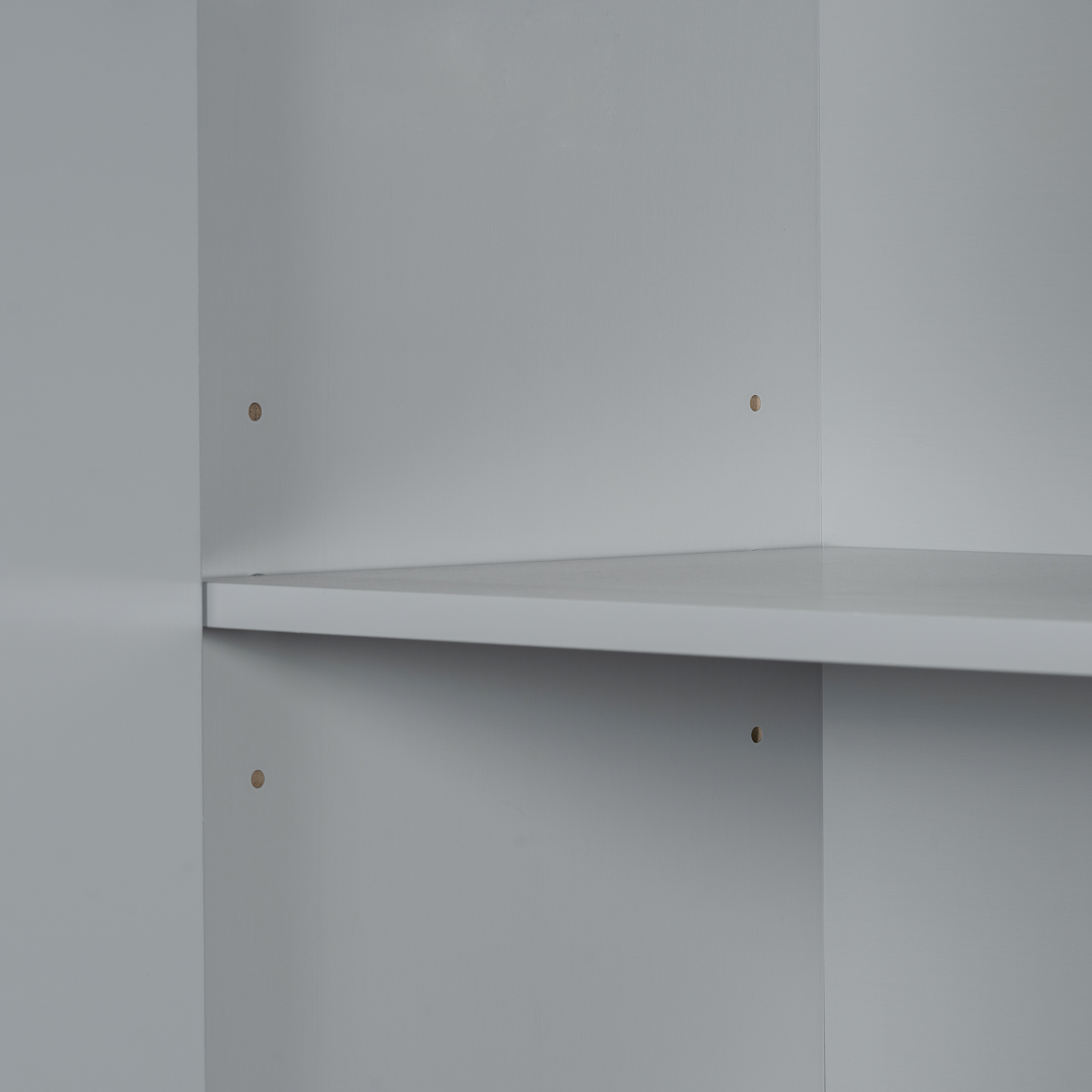 1. High-quality MDF Board & Painted Finish 2. Cabinet with Doors & One Drawer & Laundry Basket 3. Applicable for Bathroom or Laundry Room Details 1. Cloth Bags 2. Adjustable Shelf 3. Metal Black Handles 4. Soft Close Hinges 5. Anti-tipping Device