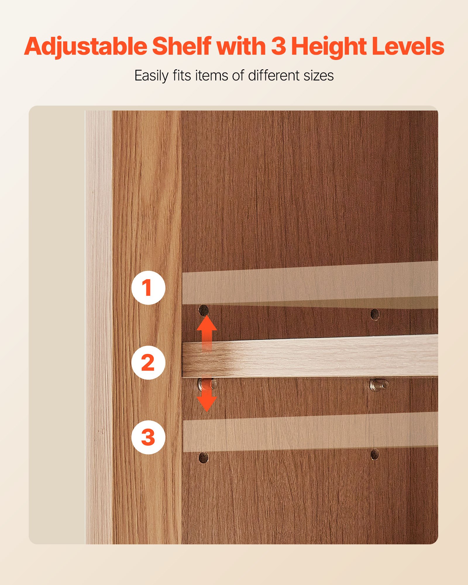 Adjustable Shelf: The wall mounted bathroom cabinet features an adjustable shelf with 3 height levels, designed to freely adapt to items of different heights. Flexible layout meets diverse storage needs, maximizing bathroom space utilization