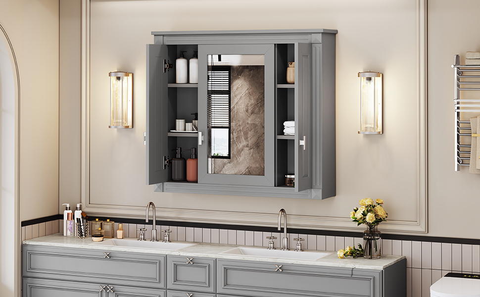 Product Name:Bathroom Wall Cabinet with Mirror, Wall Mounted Medicine Cabinet with 4 Shelves, Mirrored Door Over Toilet Storage Cabinet