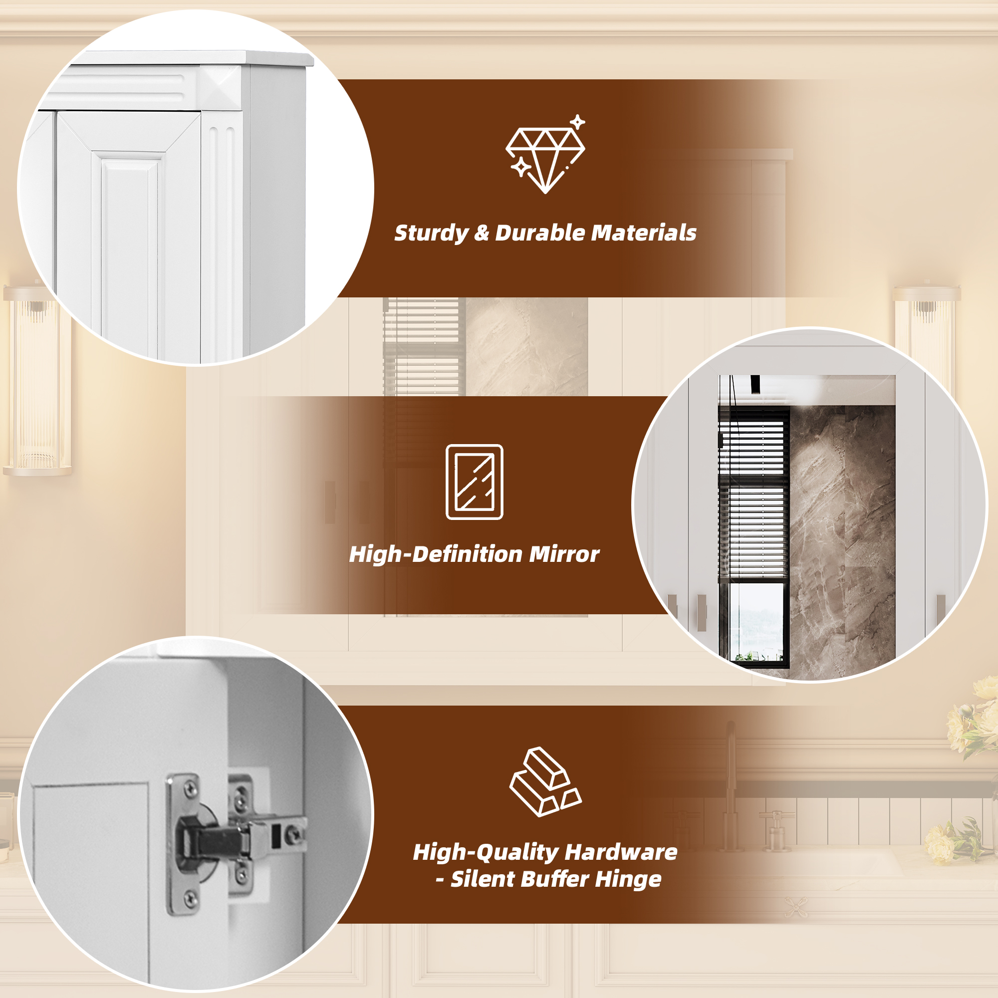 The simple lines and elegant appearance make this mirror cabinet perfectly integrated into various home styles, from modern, Nordic to minimalist styles, which can be easily matched to enhance your home taste.