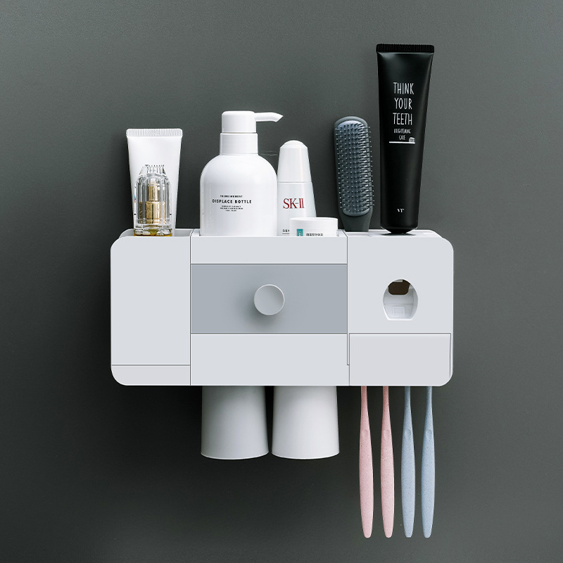 Bathroom Wall-mounted Magnetic Toothbrush Rack Automatic Toothpaste Extrusion