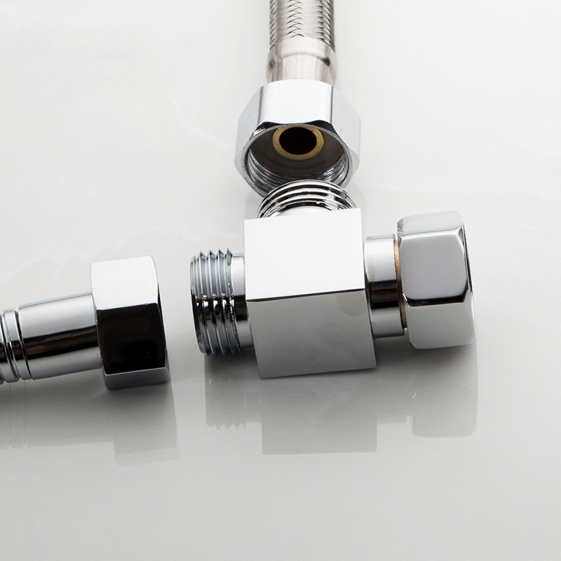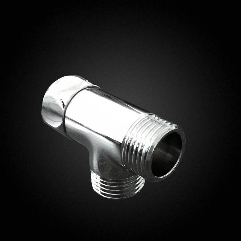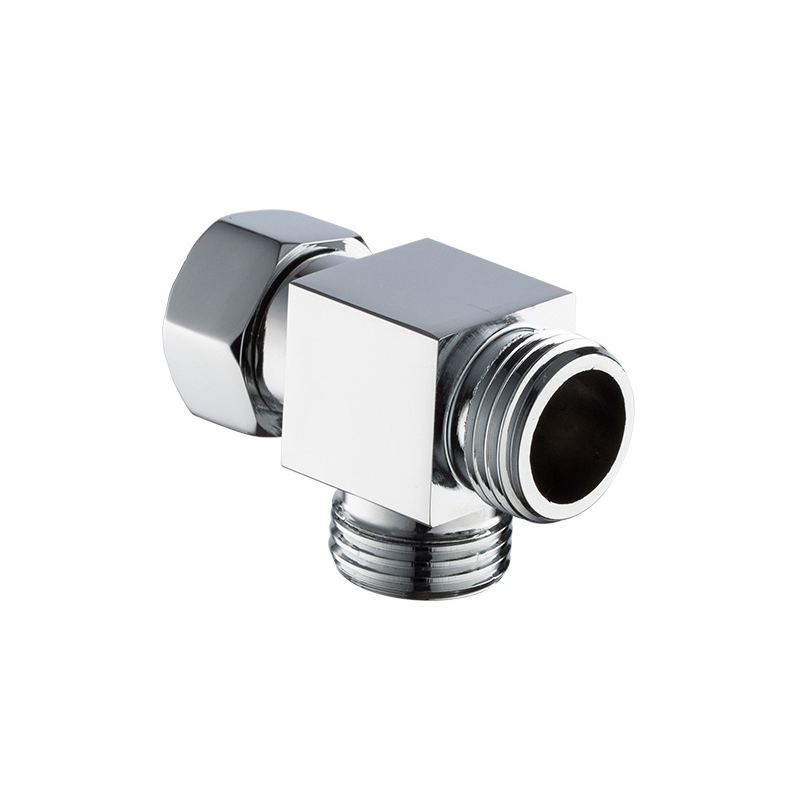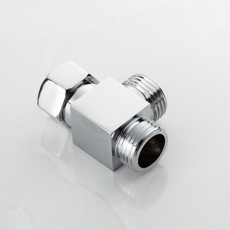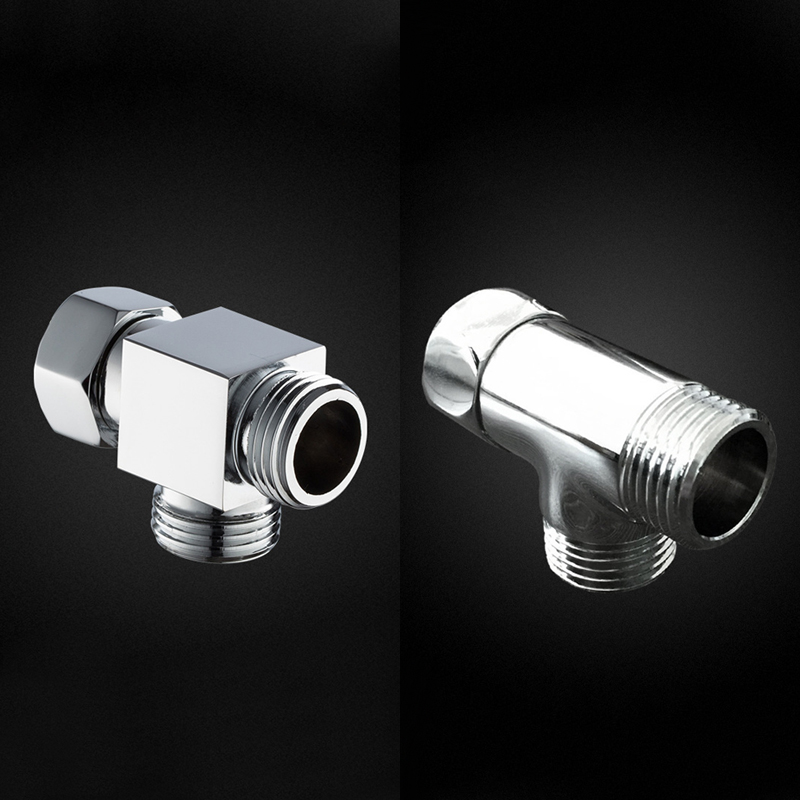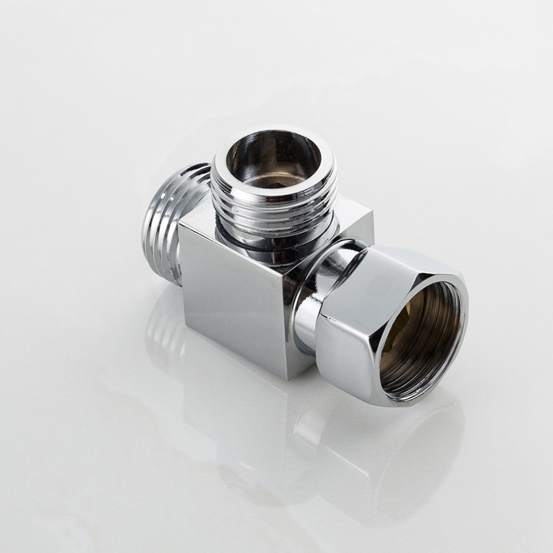 The tee fitting diverter is T-shaped and has three openings to connect angle valve, faucet and hoses/ pipes,