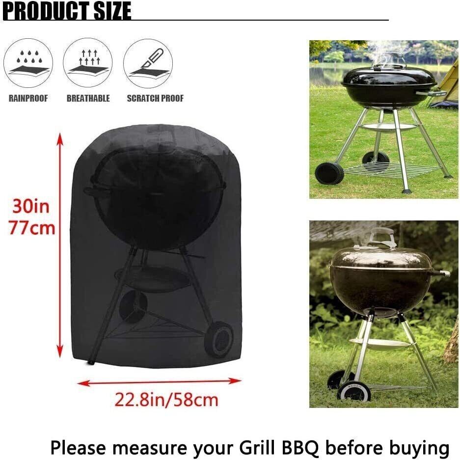 【Universal Vertical Round Grill Cover】22.8 inch/58cm (diameter) x 30.3 inch/77cm (tall); Our round grill cover waterproof dustproof, fits most charcoal kettle-style grills, such as Holland, Brinkmann, Jenn Air, Weber, Char Broil, Kettle brands of BBQ Grill etc.