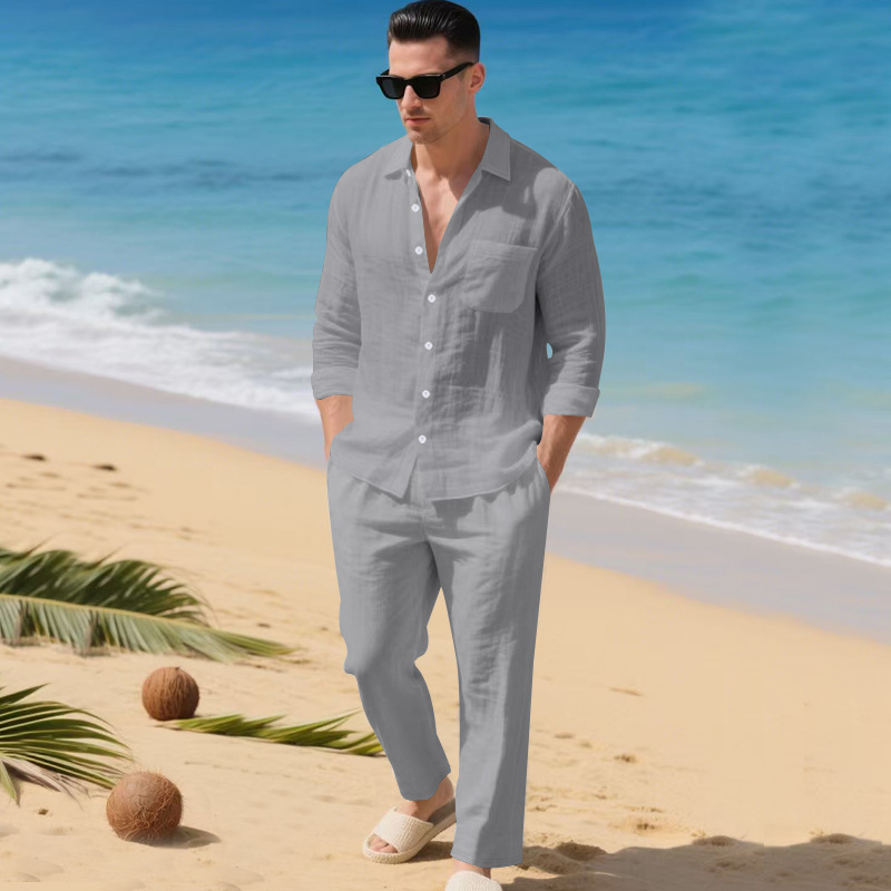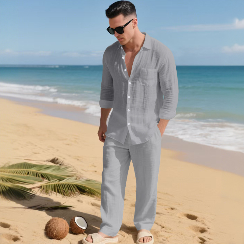 Beach Leisure Loose Collar Shirt Long Sleeve Pants Set