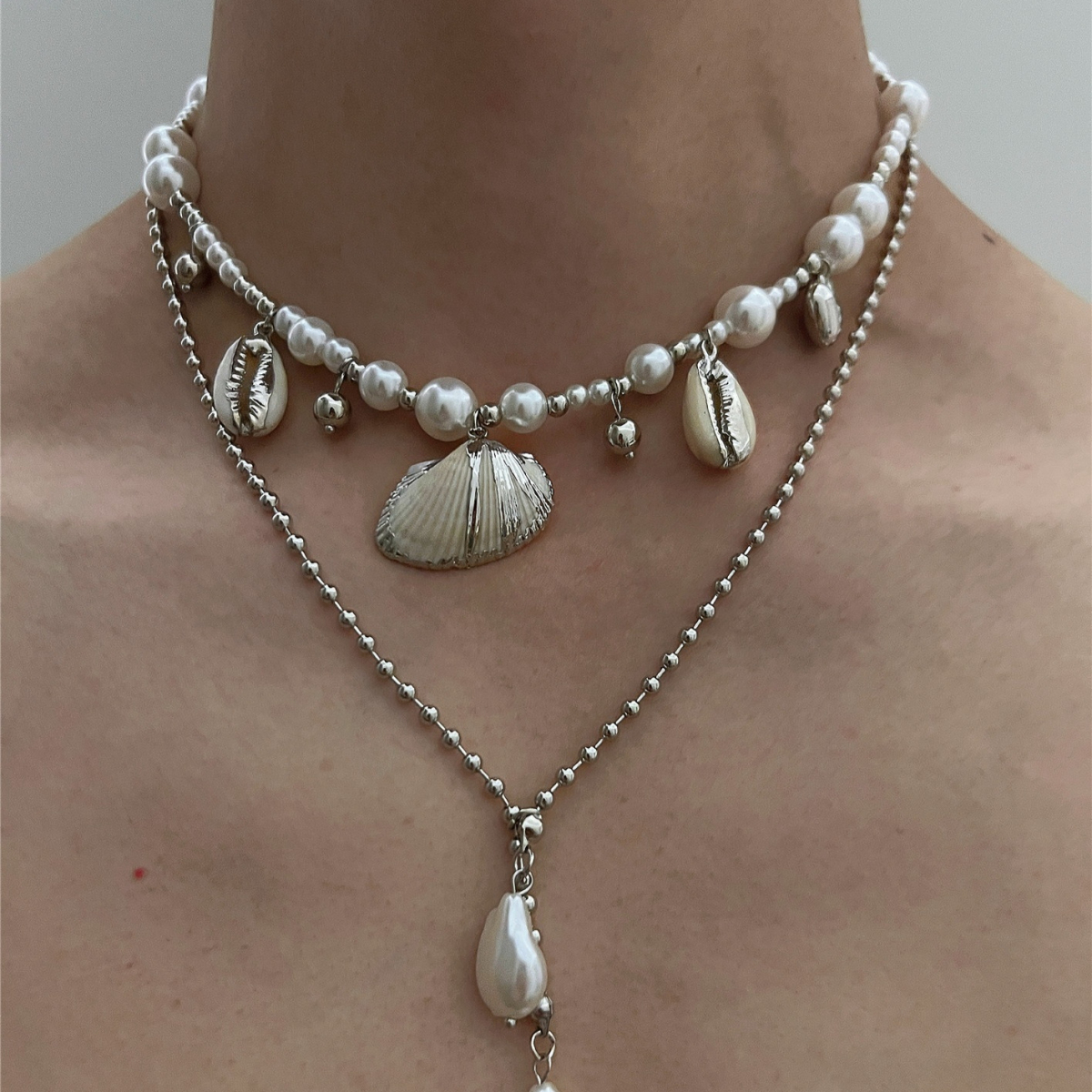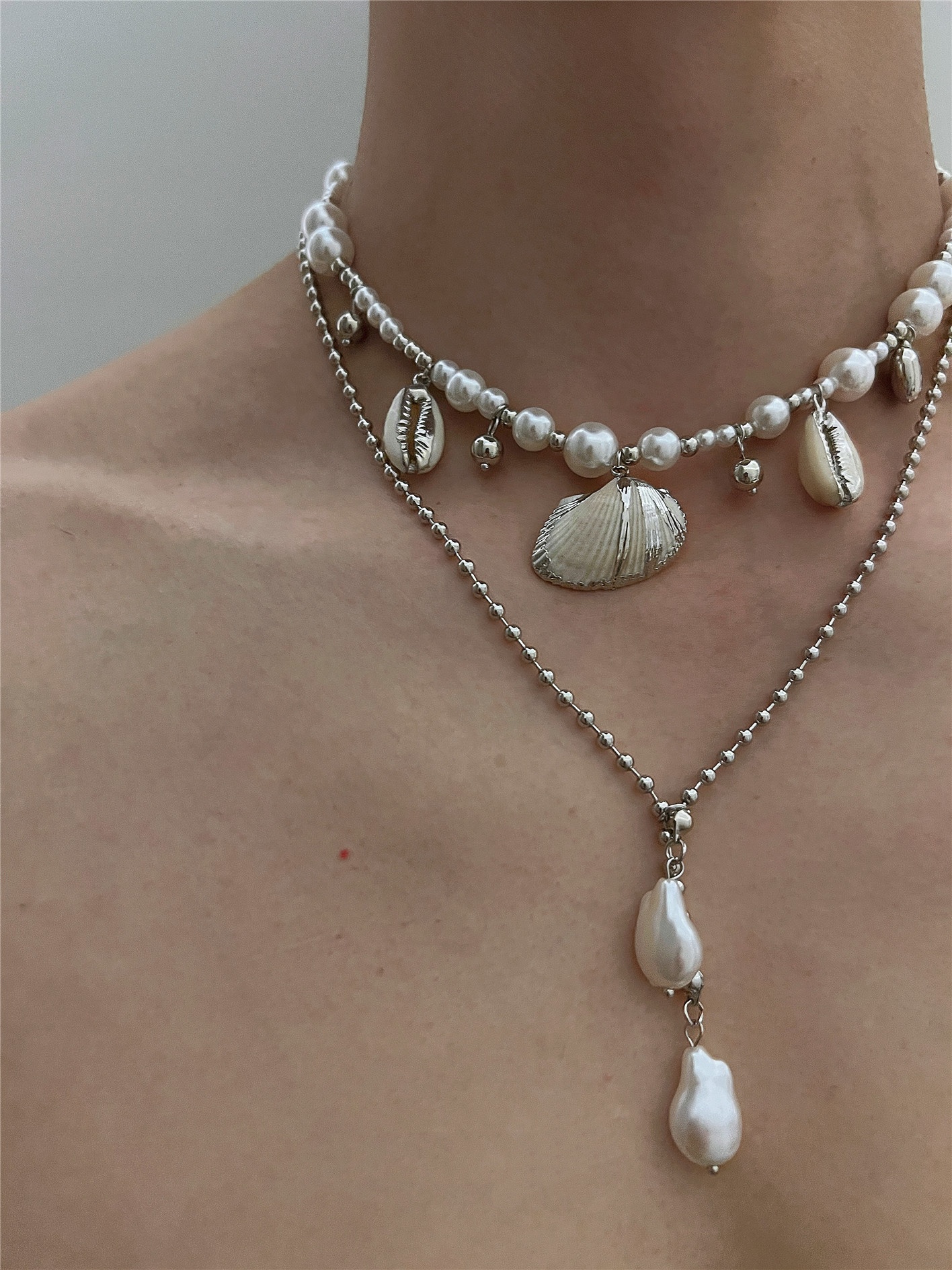 Beach Seashell ImitationPearl Pendant Double Layer Necklace