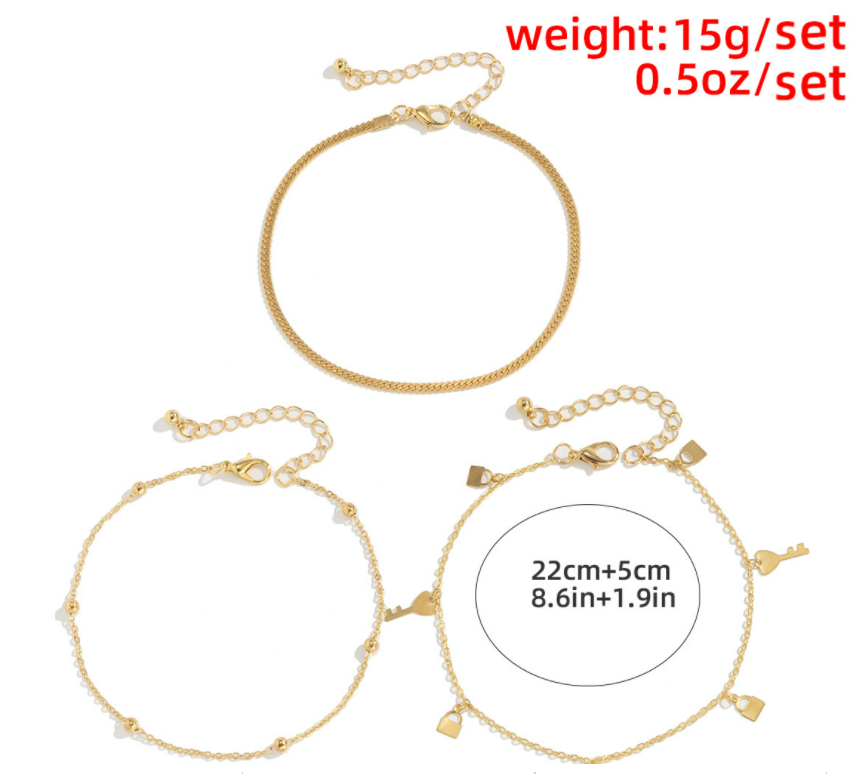 Product Details:Material: iron+copper+alloyType: AnkletStyle: Women'sModeling: GeometryColor: gold single 0614Packing list:Alloy Anklet X1