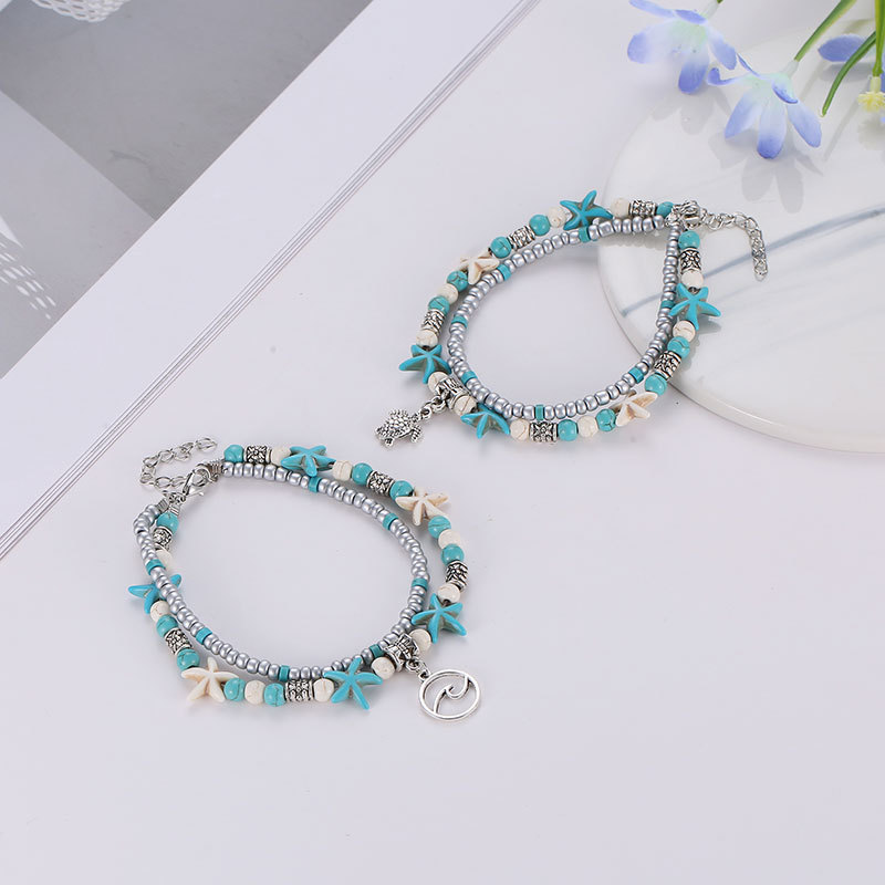 Beach Starfish Pearl Vintage Turtle Wave Handmade Foot Ornaments