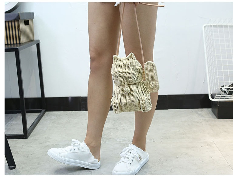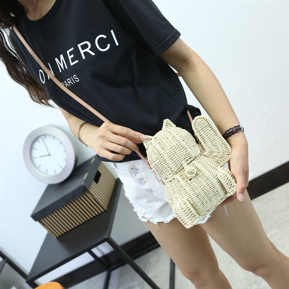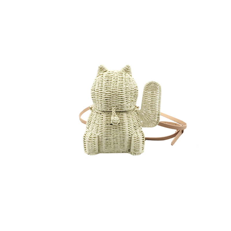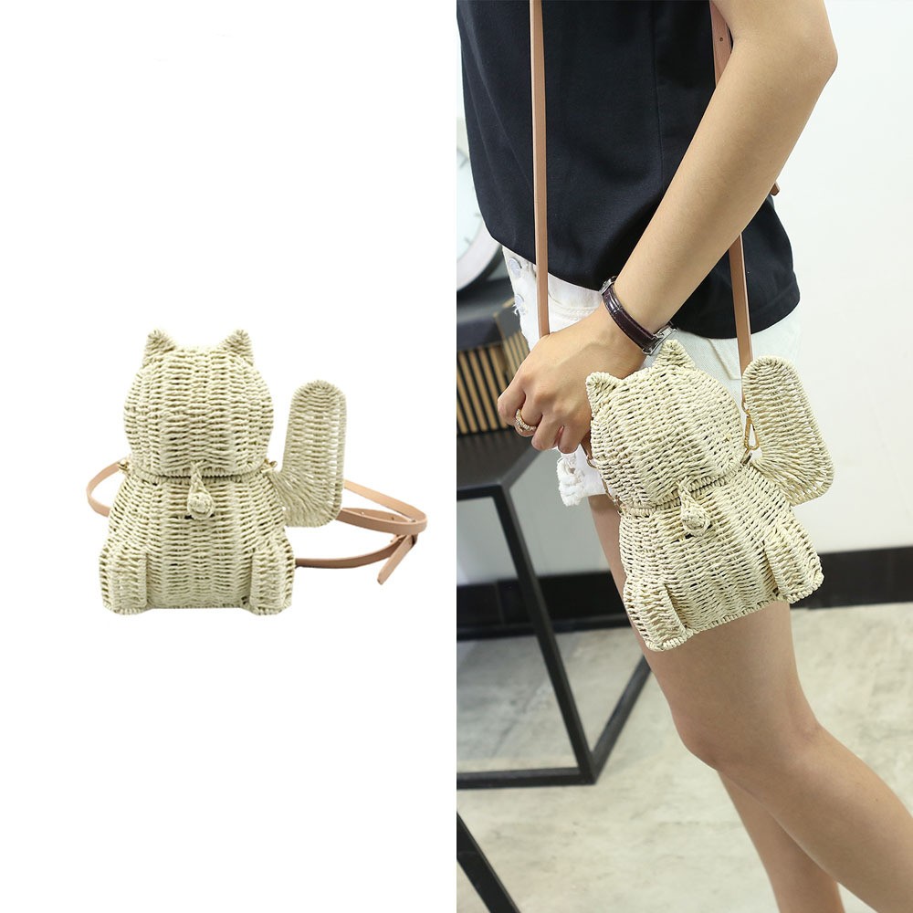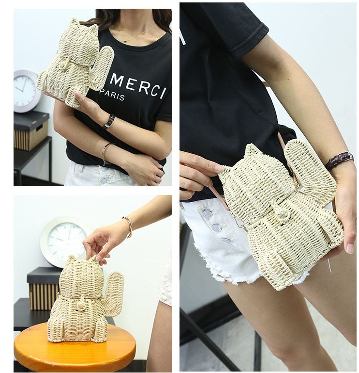 Beach Straw Lucky Cat Knitted Messenger Bag