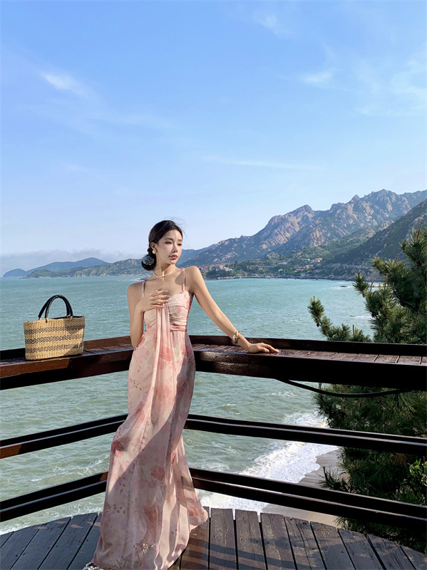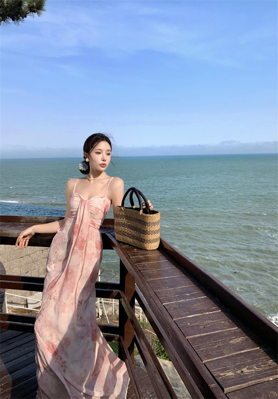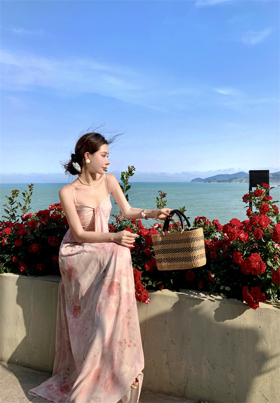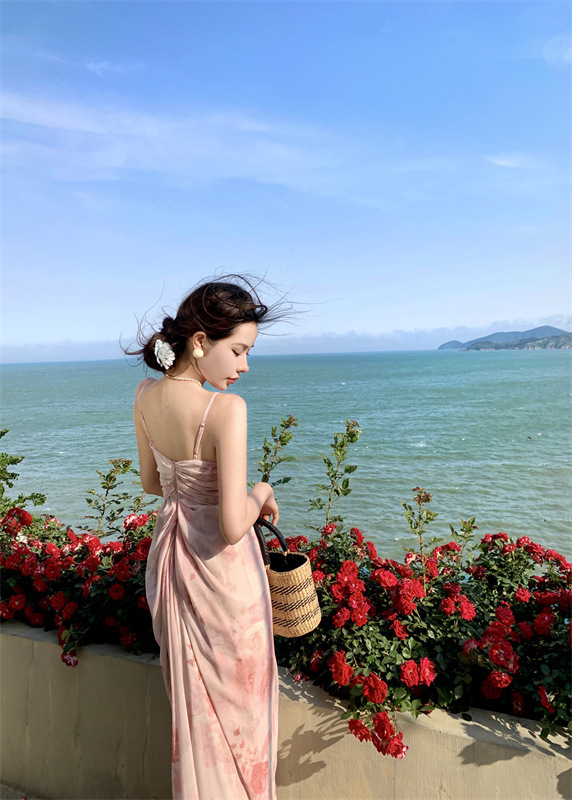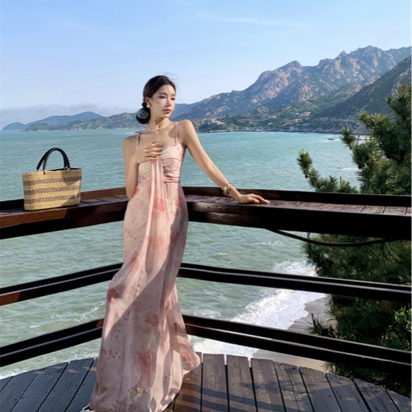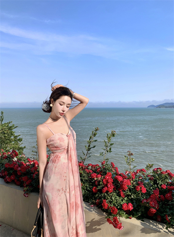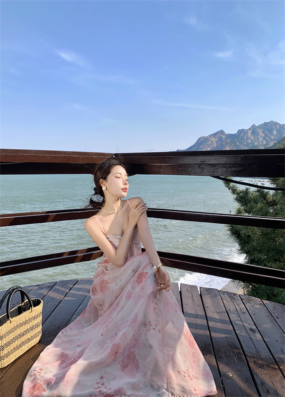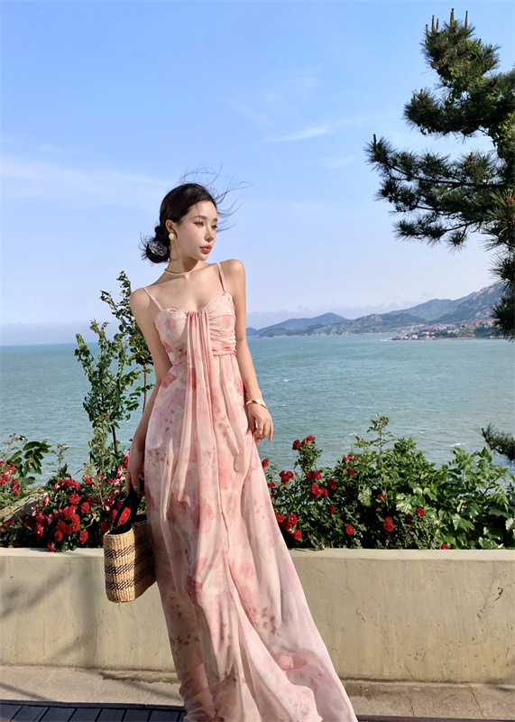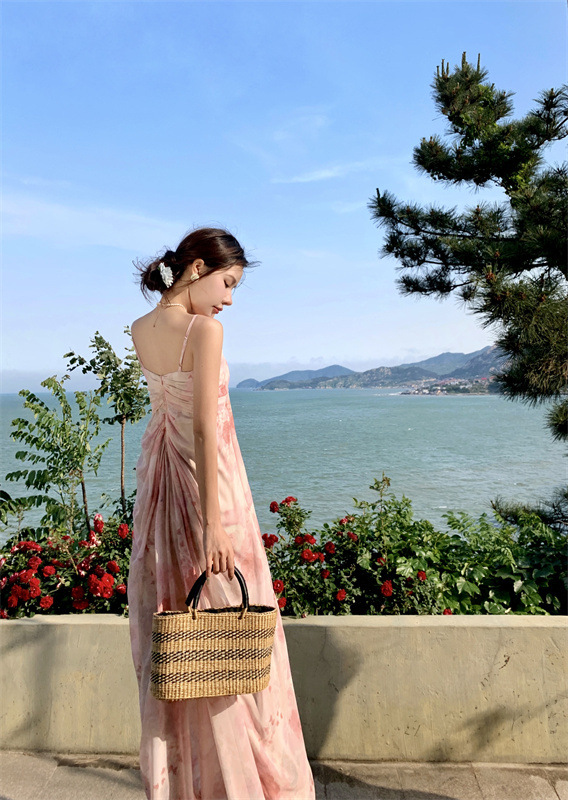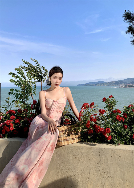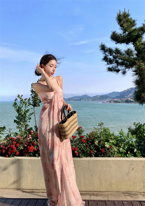 Features: Floral Print, High Waist, Mid-Length, Open Back Design, Tube Top Style, Sleeveless, Patchwork Craftsmanship