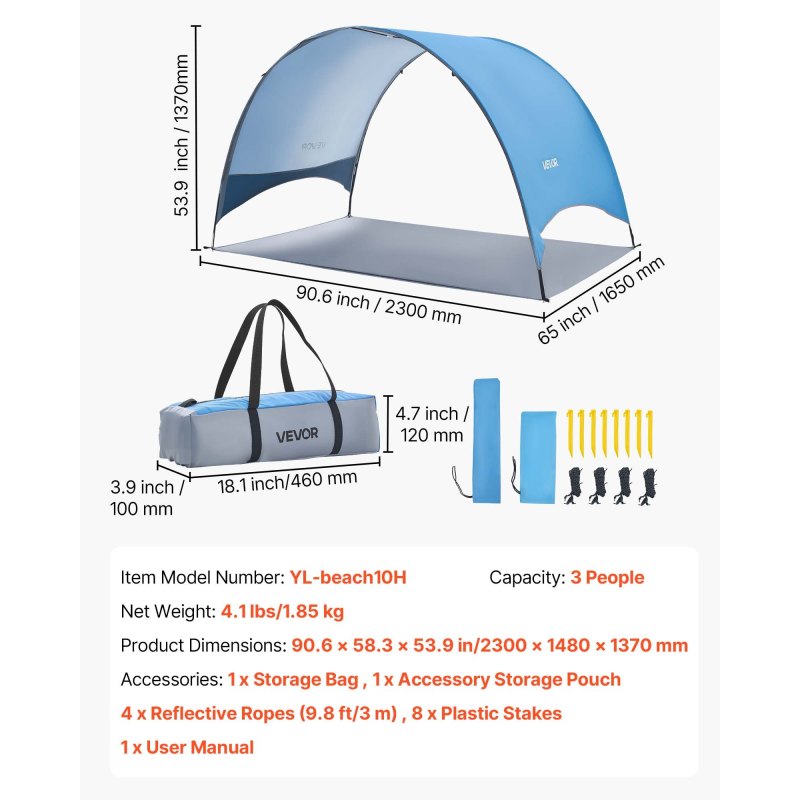 3-Person Beach Tent: Designed for families of three, our beach tent sun shelter provides spacious shade and a spacious room to relax. Setup is effortless—just a few minutes for a quick, stress-free assembly
