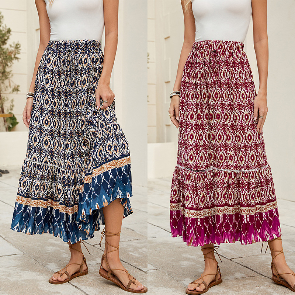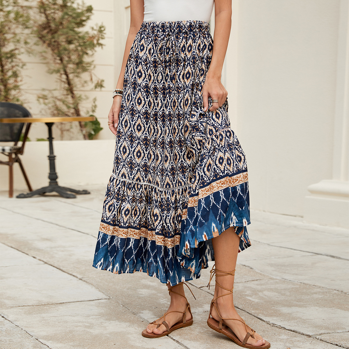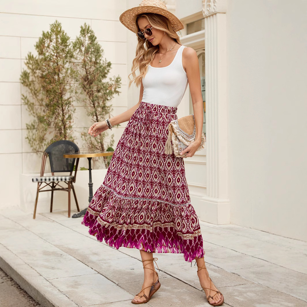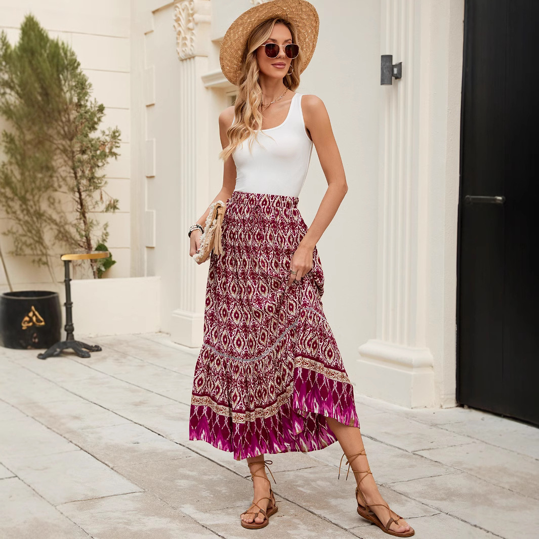 Beachside Maxi Skirt With A Bold Floral Print For Vacation