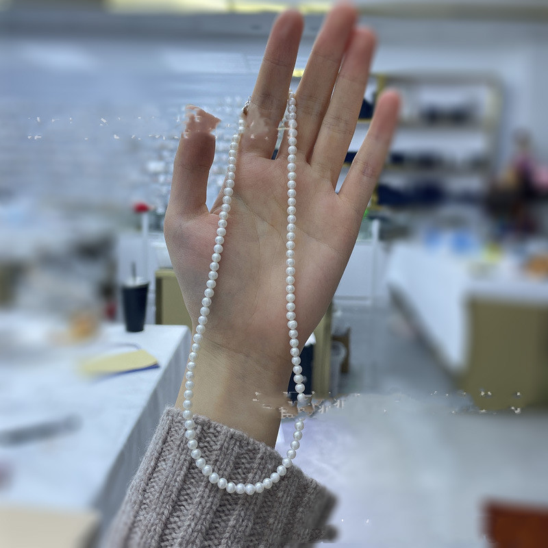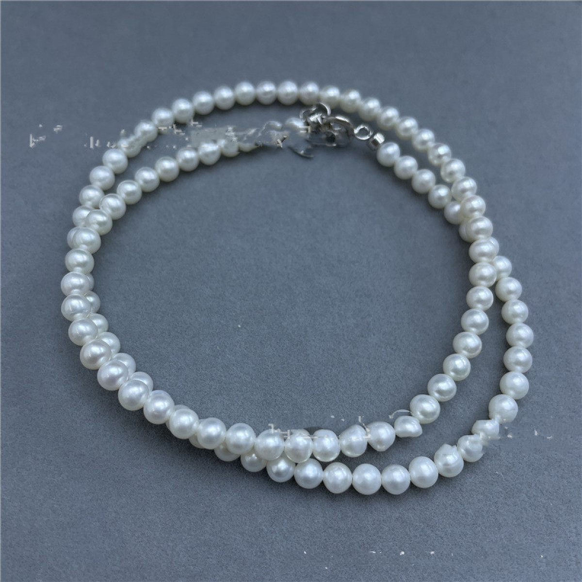 Bead Nearly Round White Bright S925 Silver Adjustable Chain