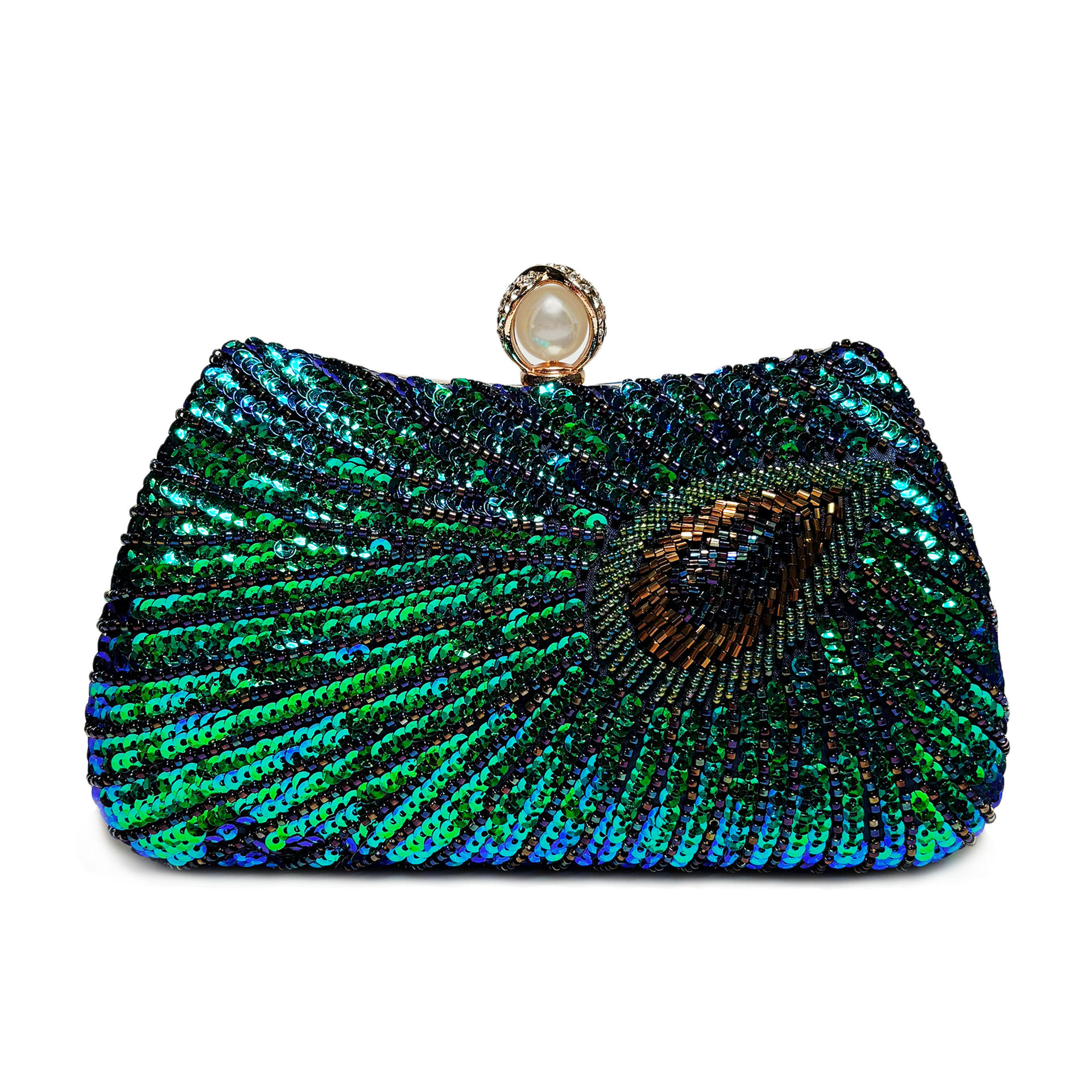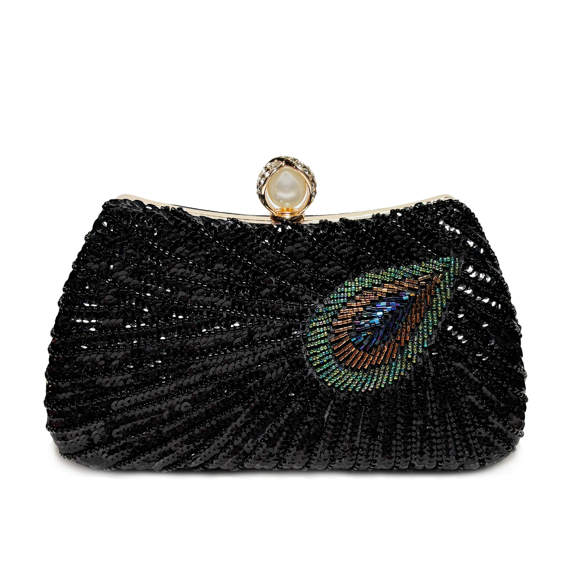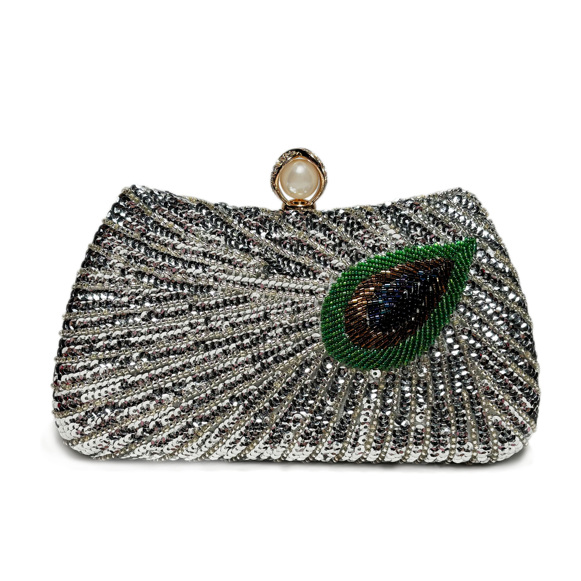 Beaded Peacock Feather Large Pearl Rhinestone Large Capacity Crossbody Shoulder Bag