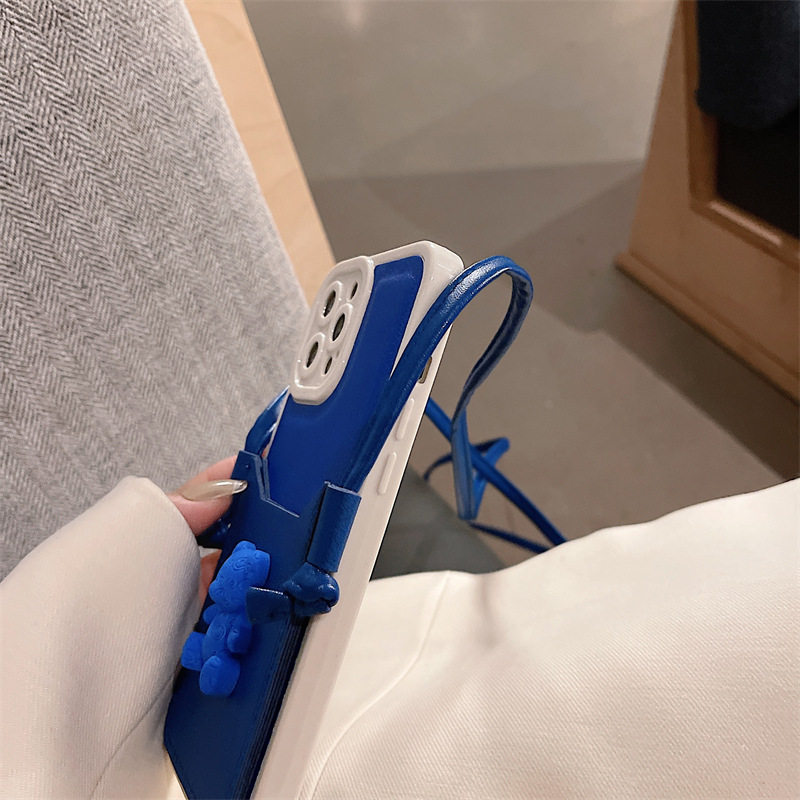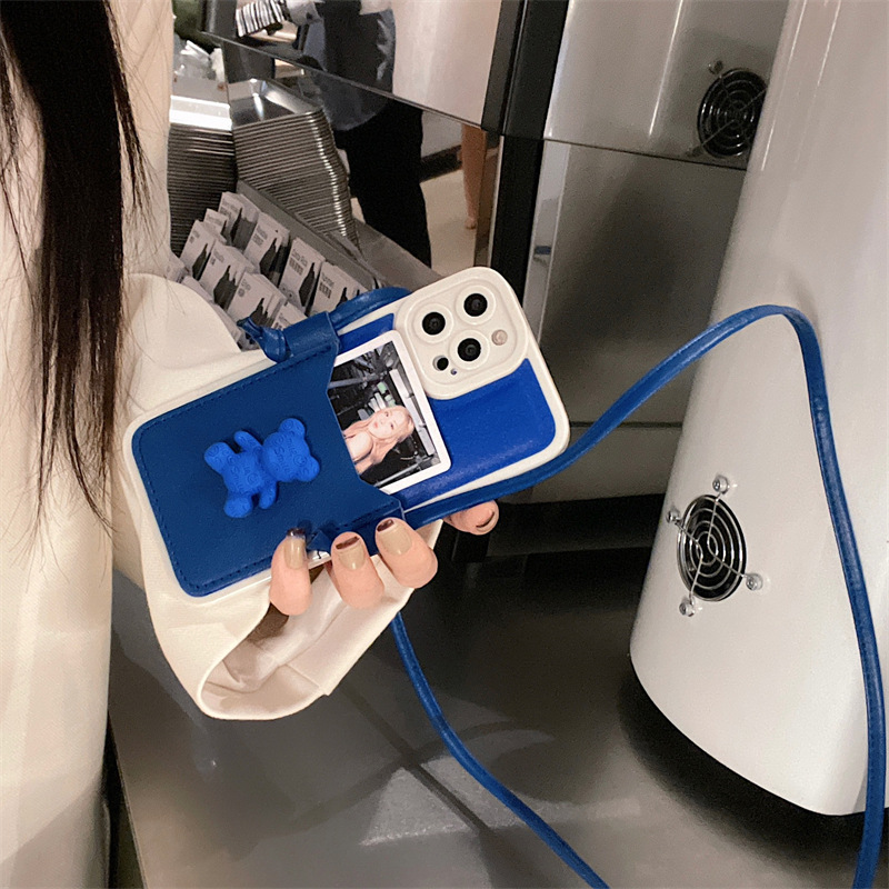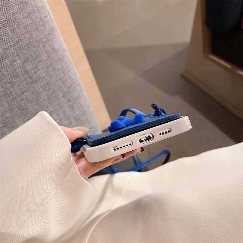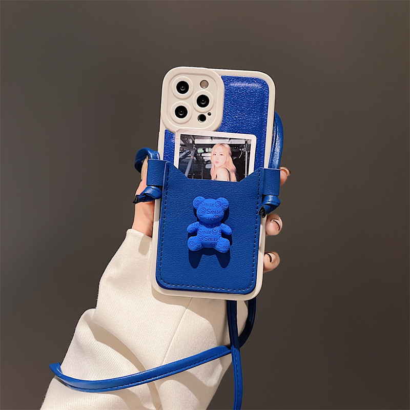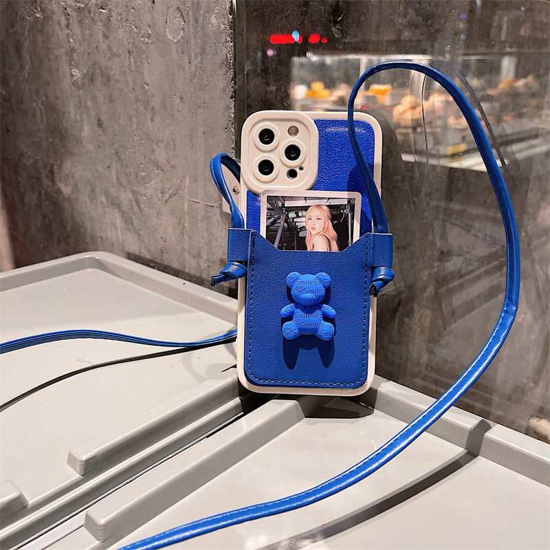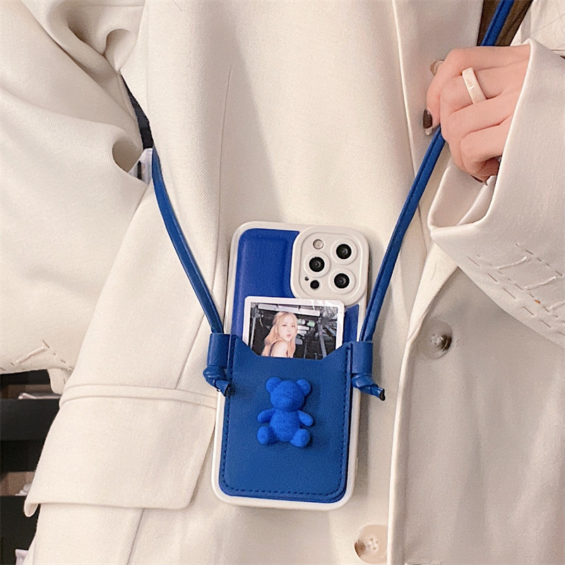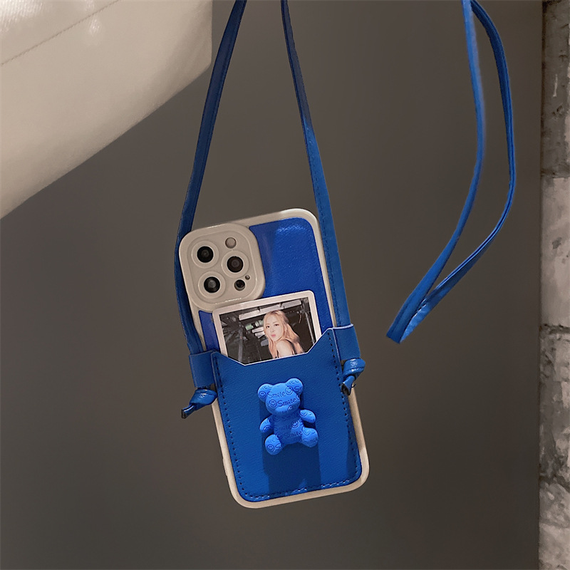 Color: Leather Soft Shell Blue Bear Card Holder + Lanyard