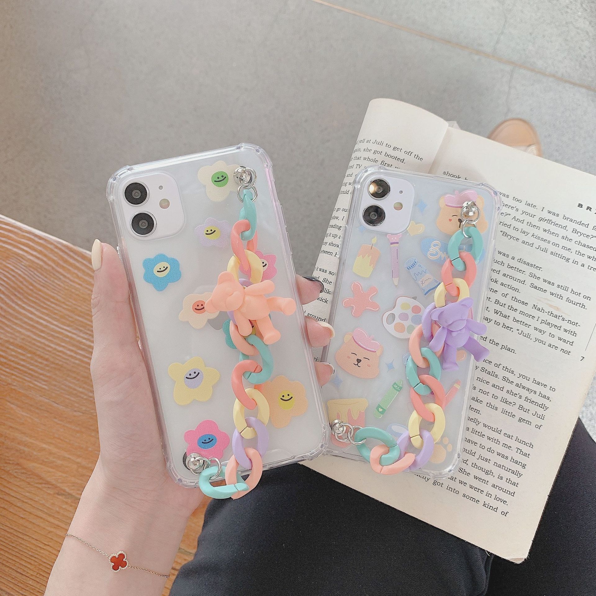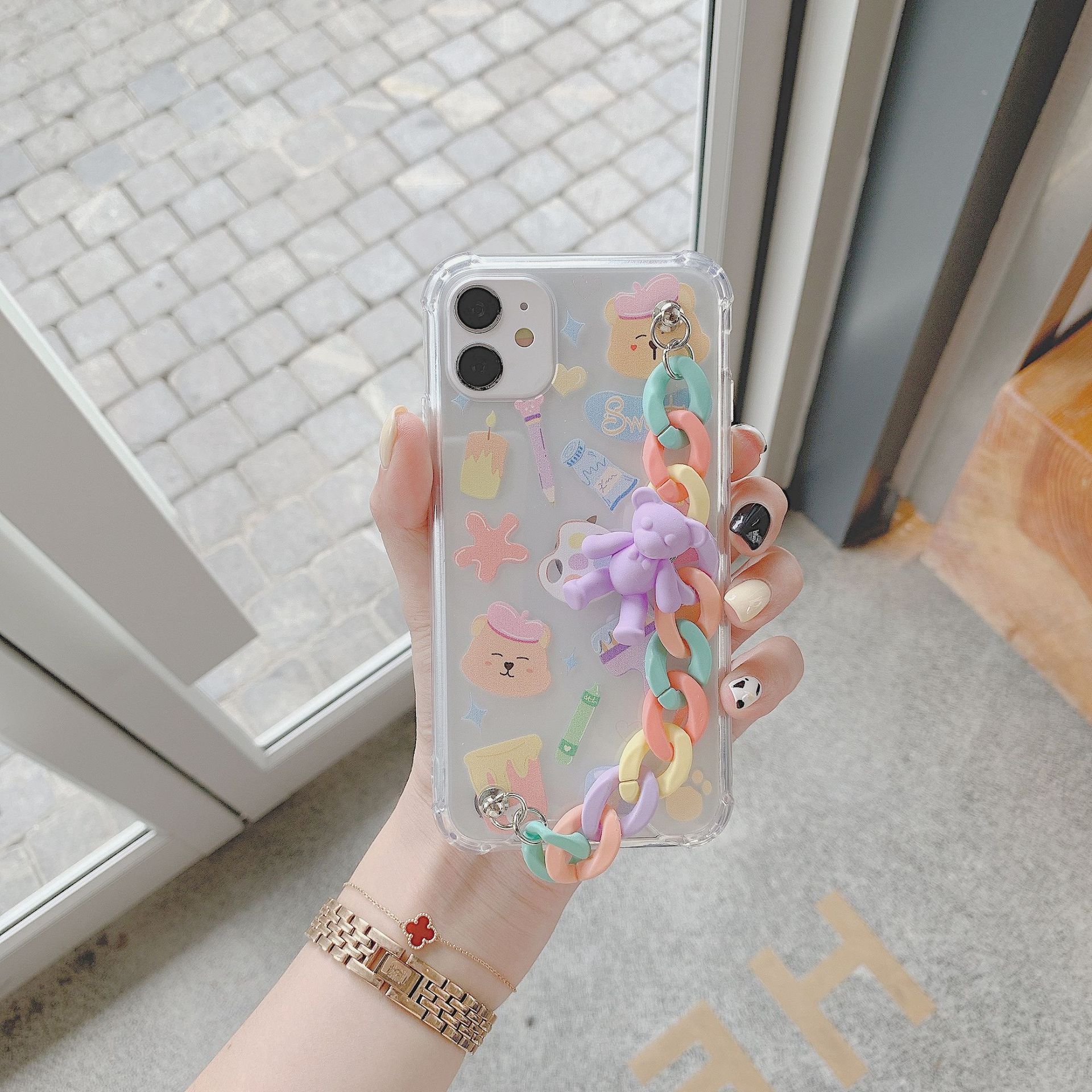 Bear Color Cute Chain Phone Case Drop Potection Cover