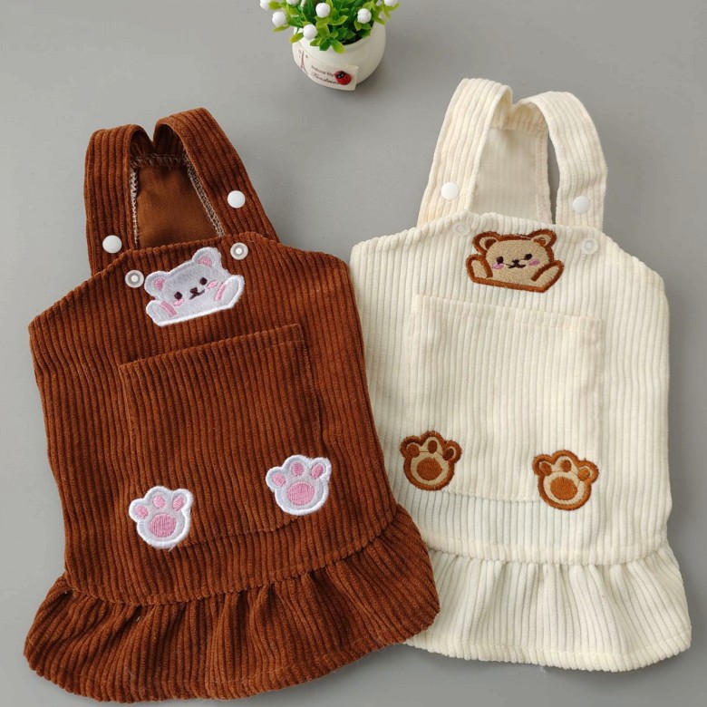 Color: bear embroidered bib skirt brown, bear embroidered bib skirt beige