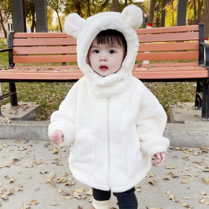 Bear Hooded Plush Cotton-padded Coat Thickened Warm Mid-length Jacket