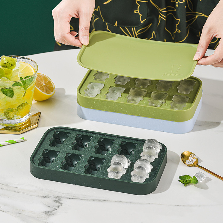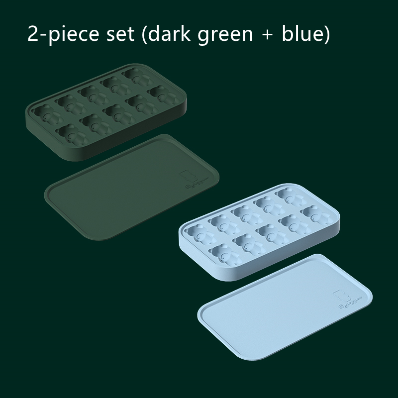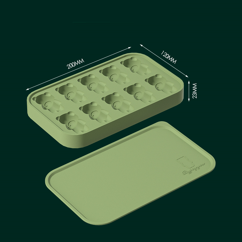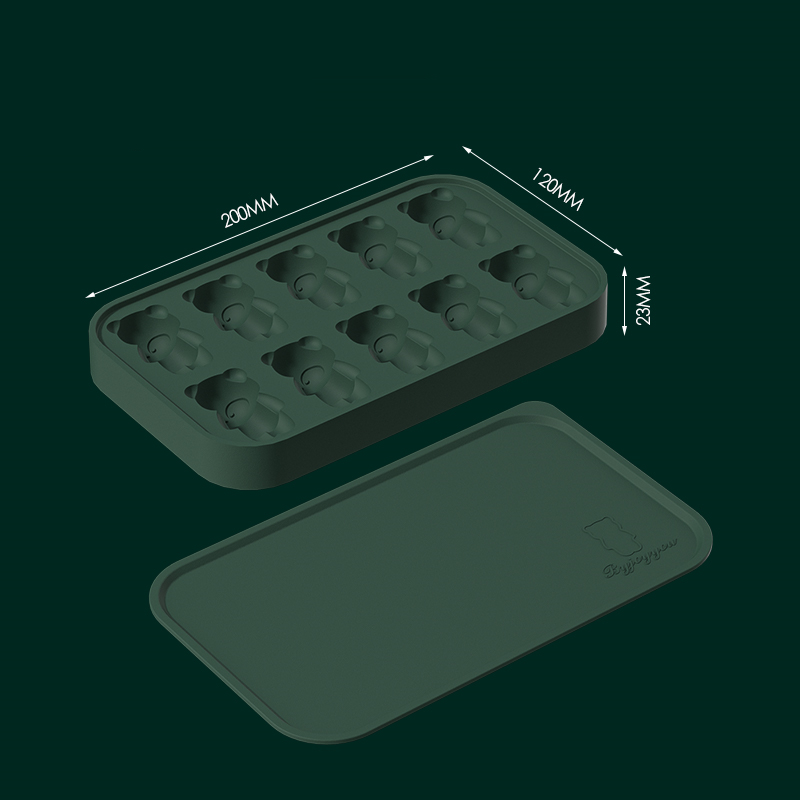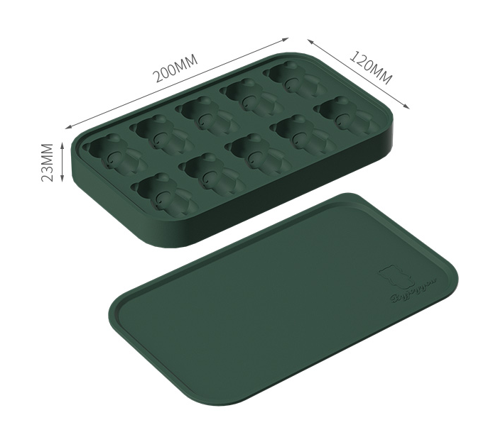 Dark Green [10 Grid Bear Silicone Ice Tray]