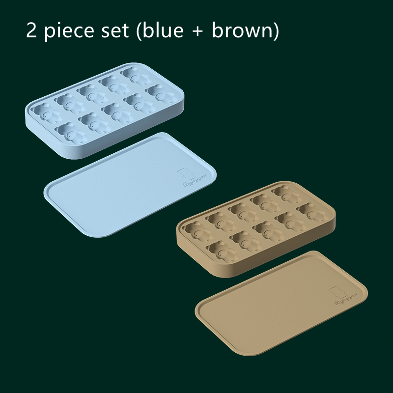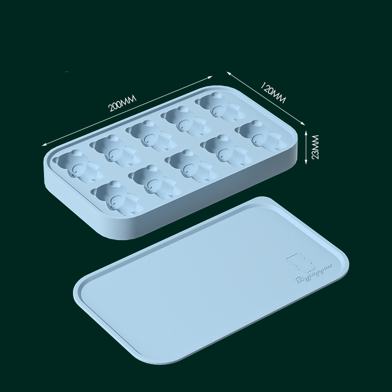 Blue [10 Grid Bear Silicone Ice Tray]