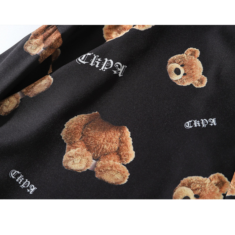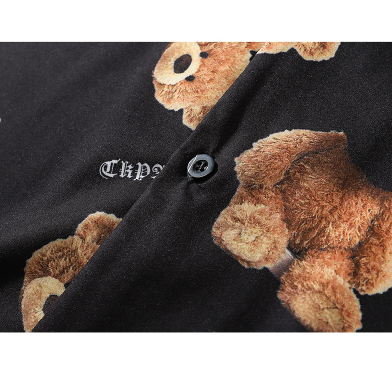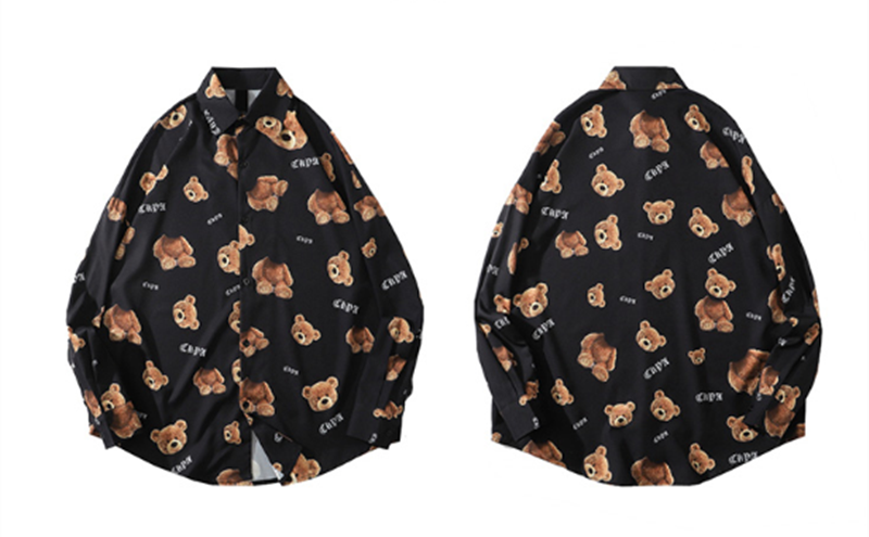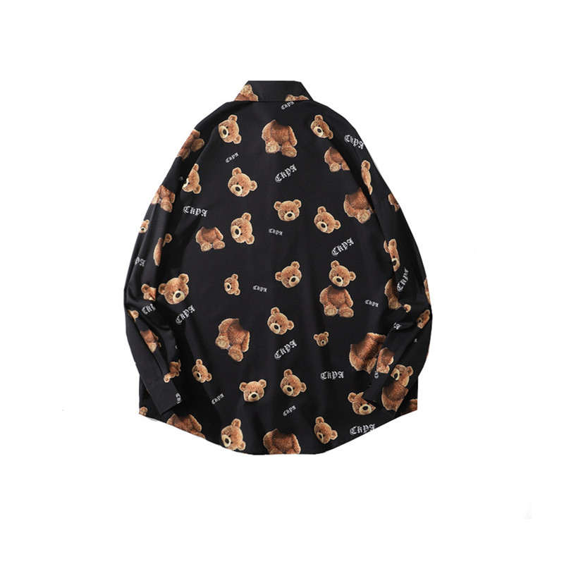 Bear Print Long-sleeved Shirt Men and Women High Street Drop Shoulder Shirt