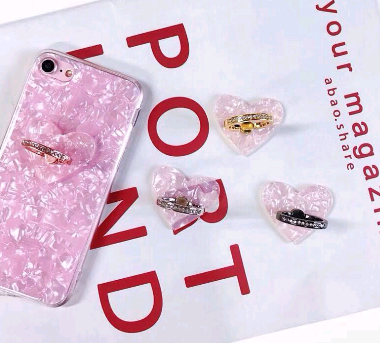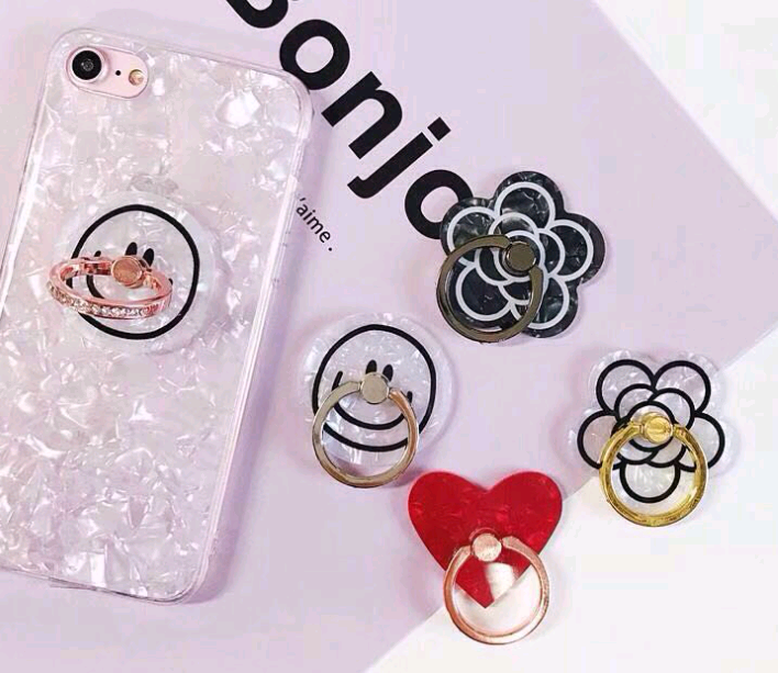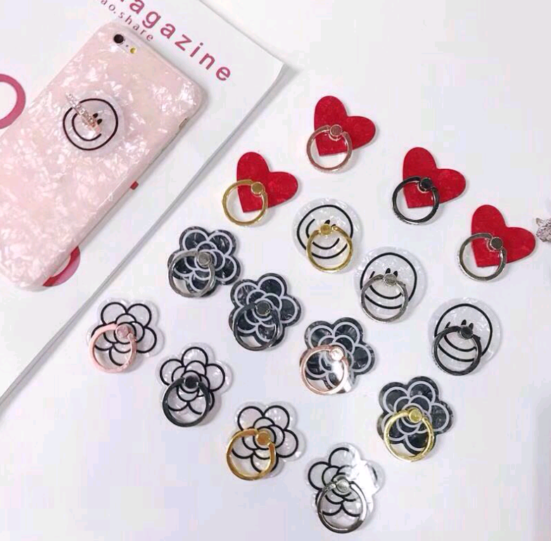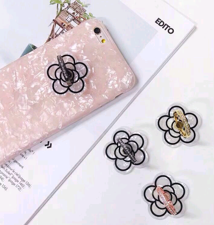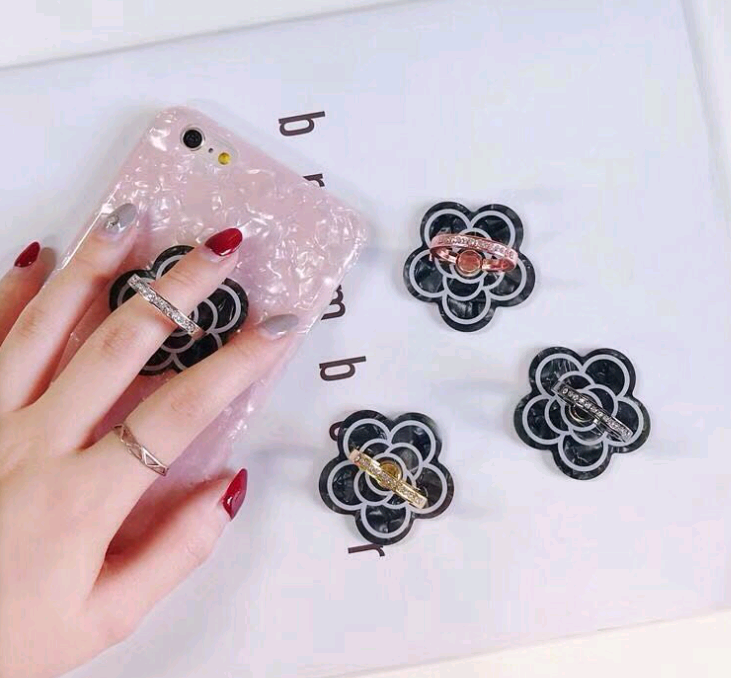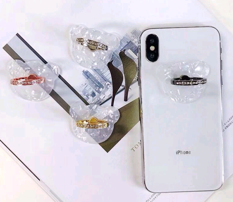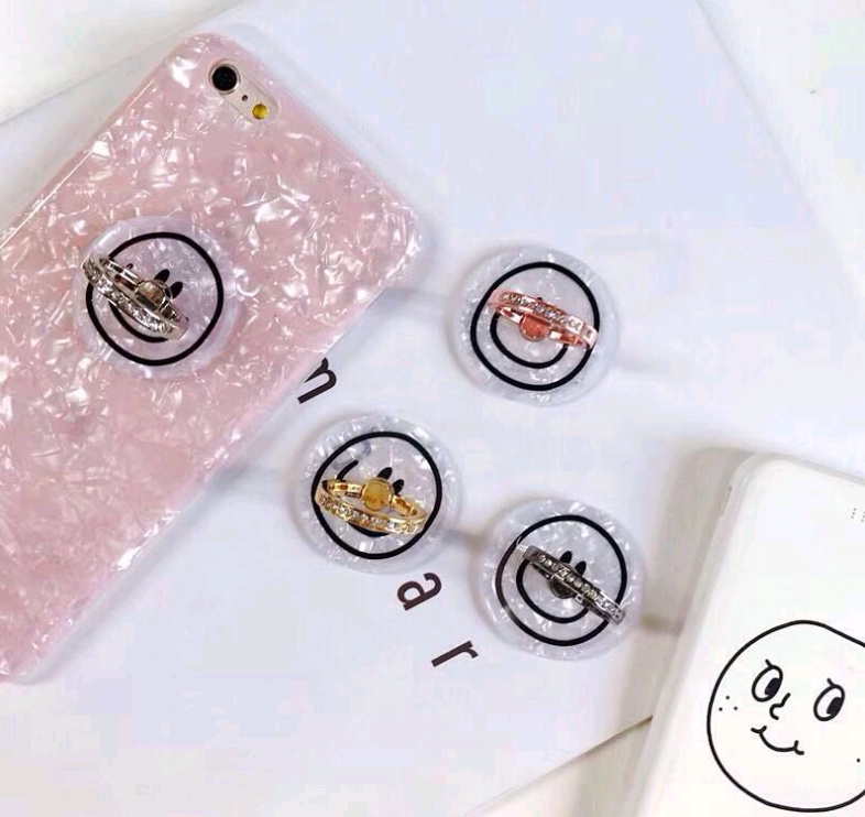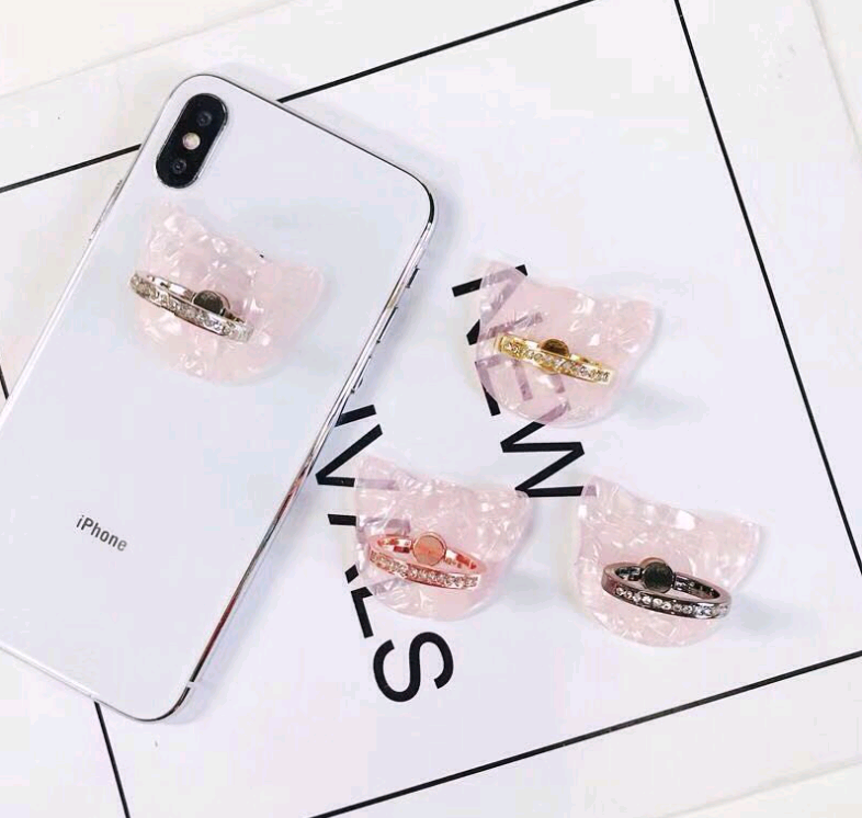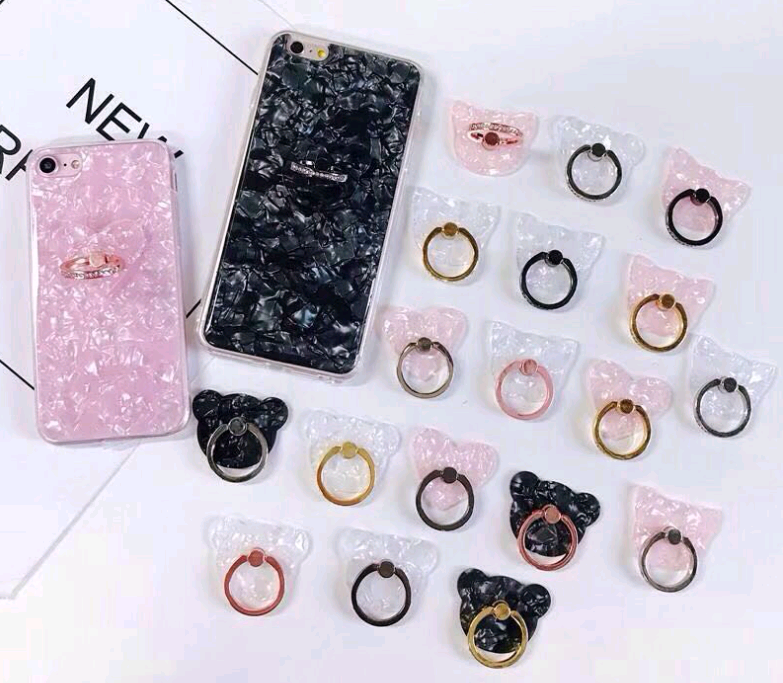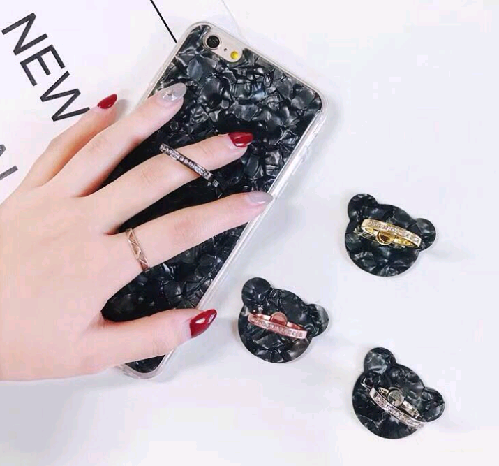 Bear shell pattern with drill ring bracket metal phone buckle cat head love smile face camellia bracket