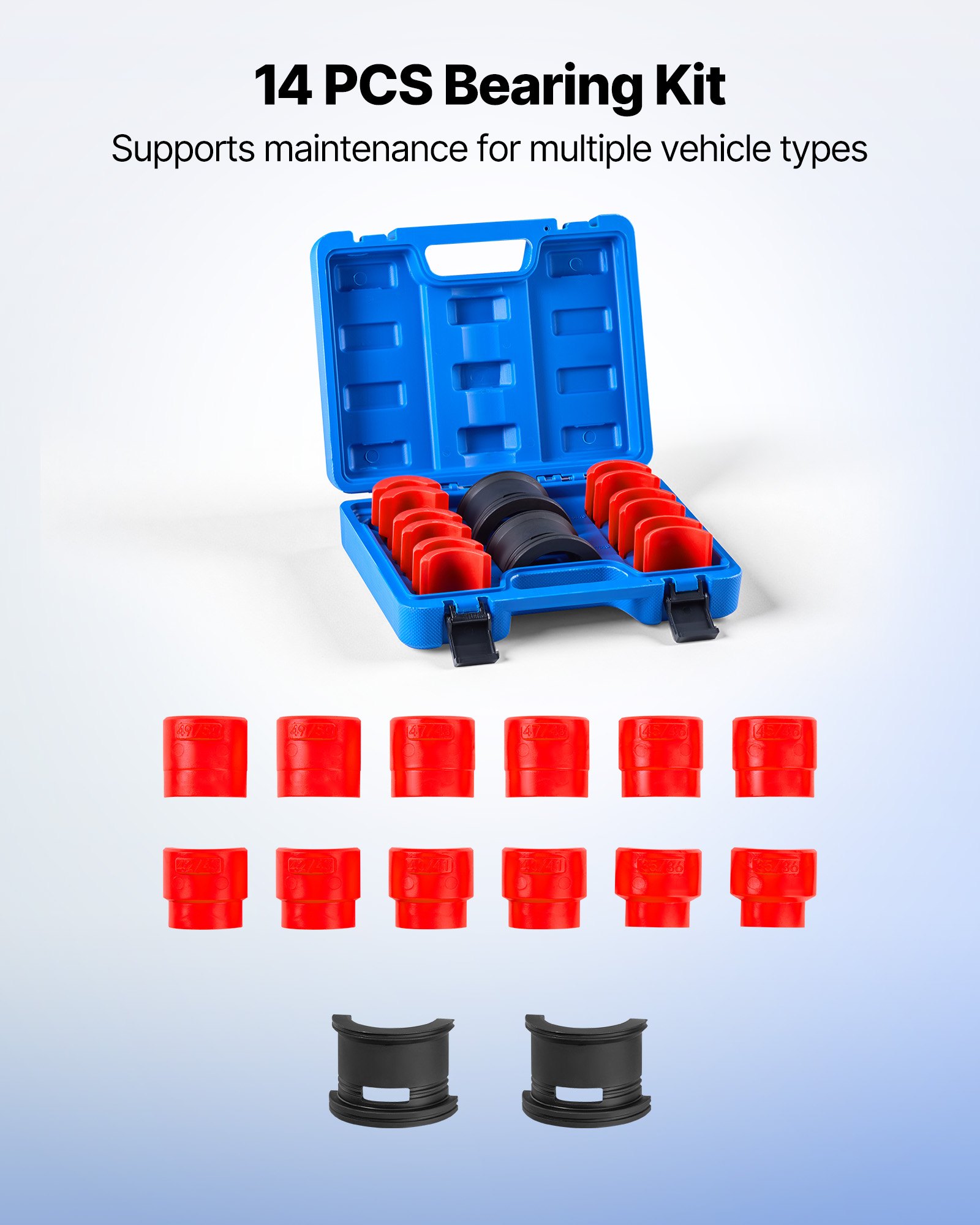 Comprehensive Sizes: Our bearing press kit handles various sizes of bearing disassembly tasks. It is equipped with 14 pcs of commonly used disc sleeve sizes and multiple assembly accessories for complete tools