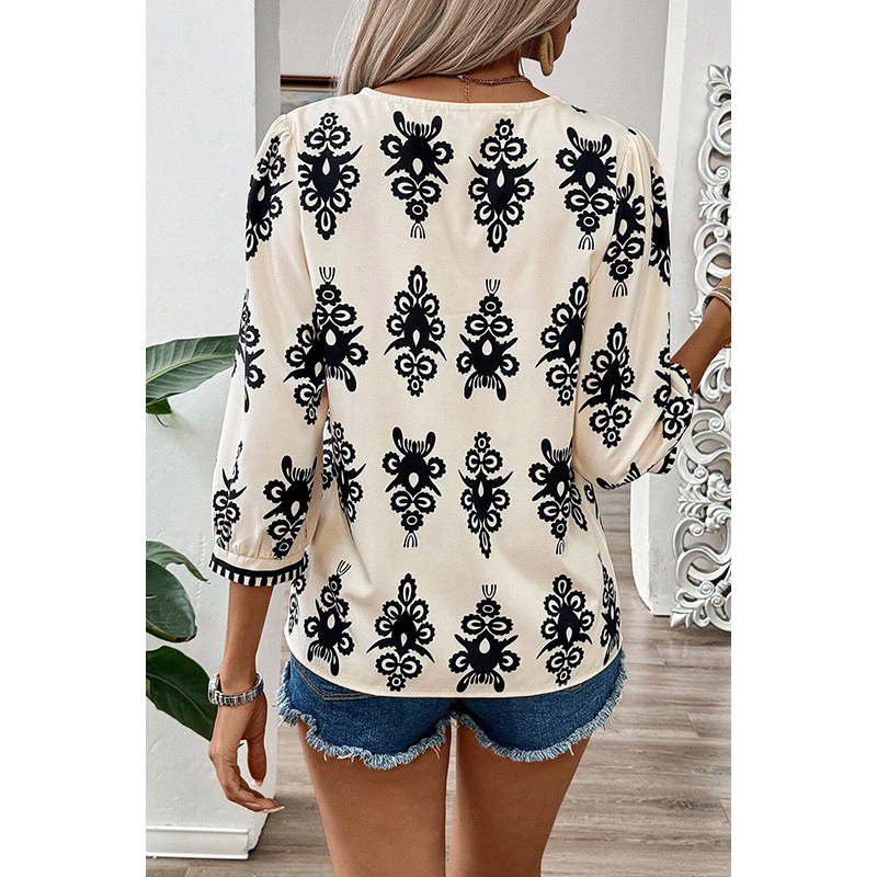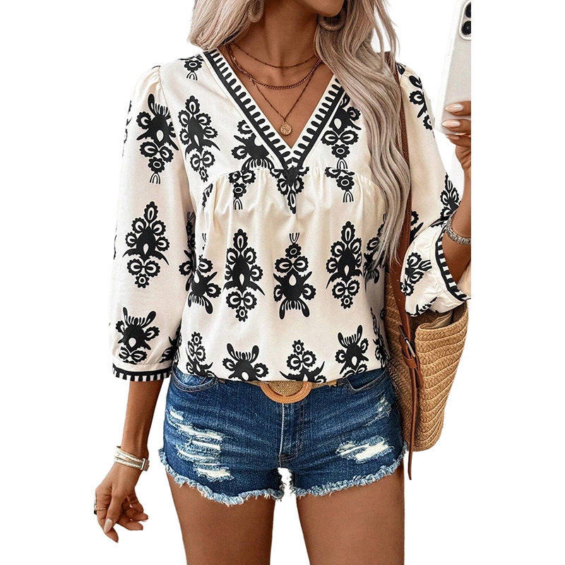 Beautiful Bohemian Retro Printed 34 Sleeves Top
