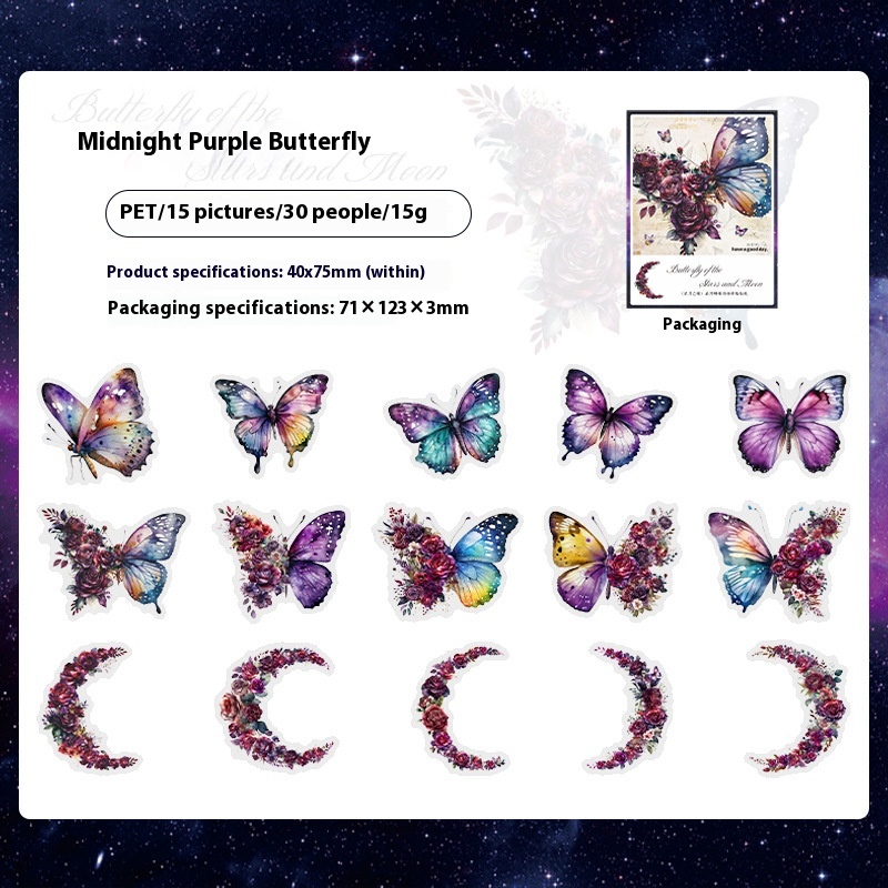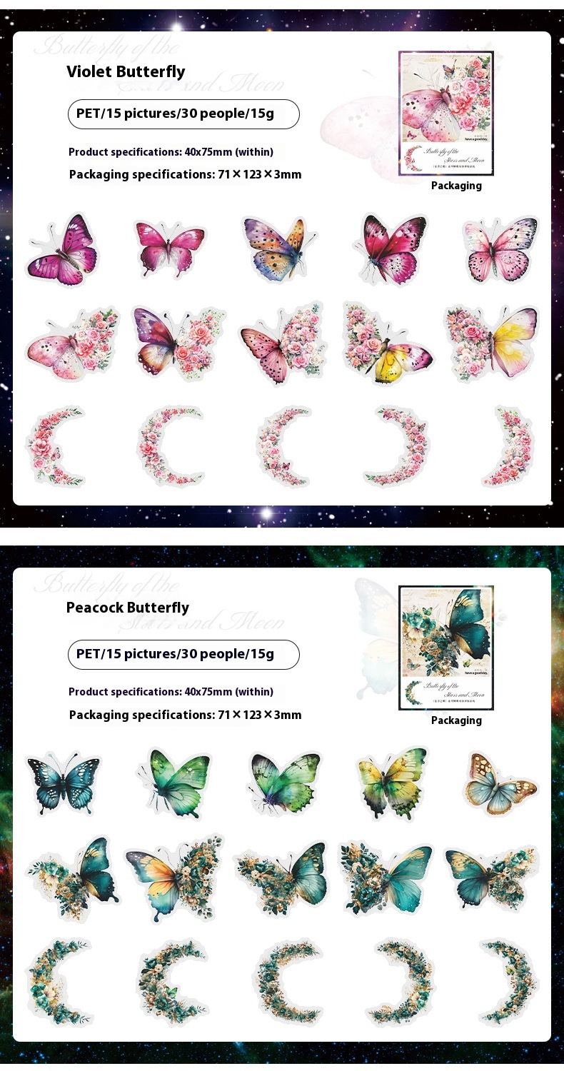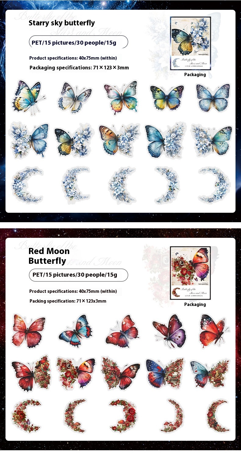 Color: Midnight purple butterfly, starry sky butterfly, Red Moon butterfly, Violet butterfly, peacock butterfly, Amber butterfly, day and night butterfly, pink fantasy butterfly
